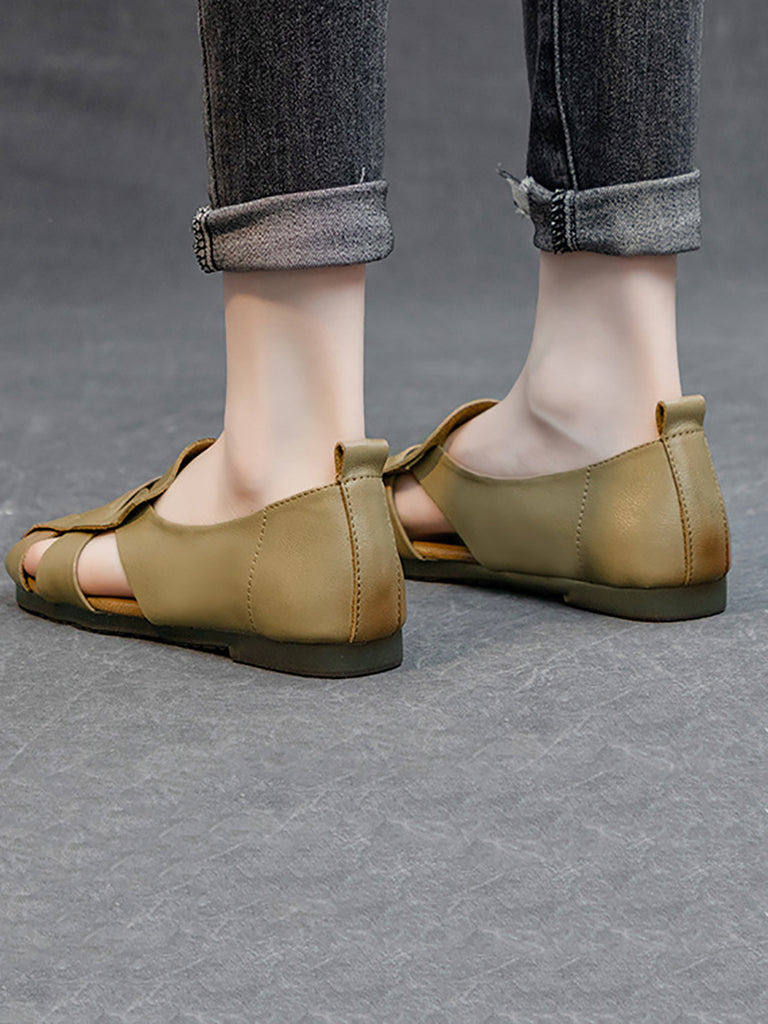 Chaussures d'été en cuir Vintage solide pour femmes, chaussures souples ajourées