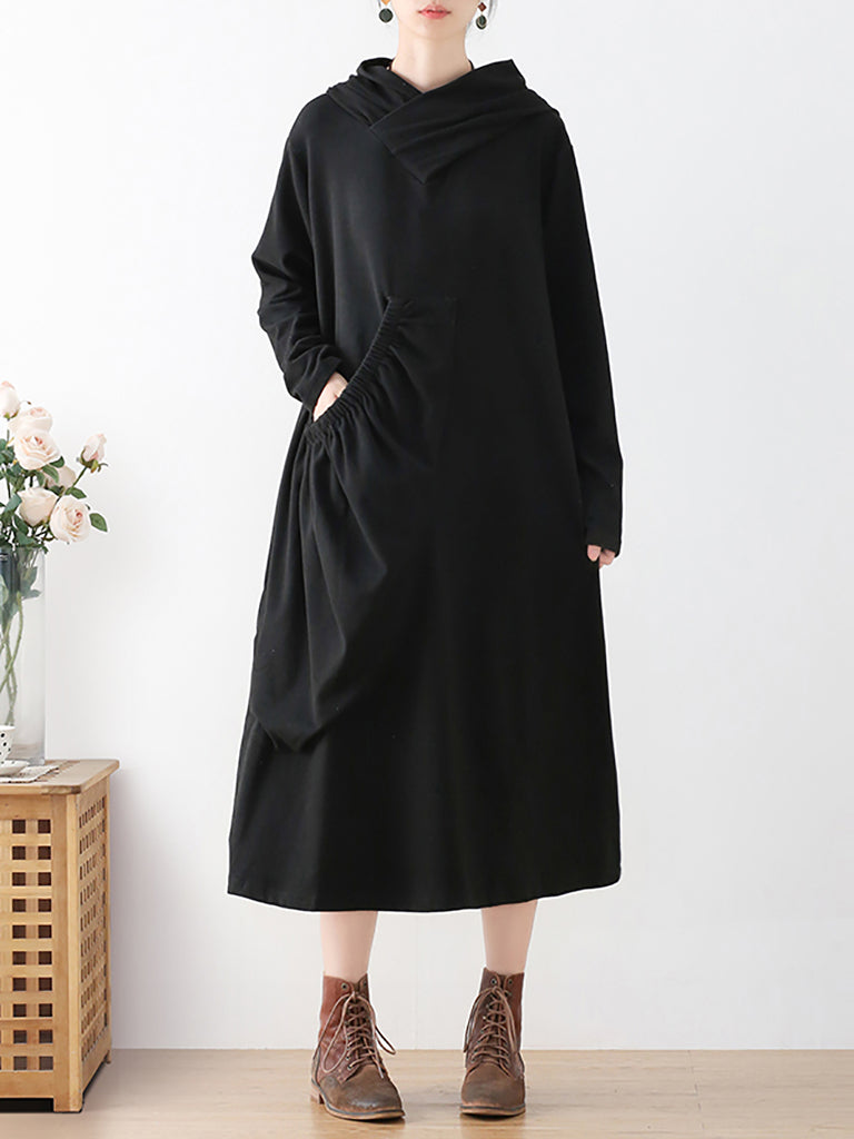 Robe à capuche ample froncée à fleurs rétro pour femmes de grande taille