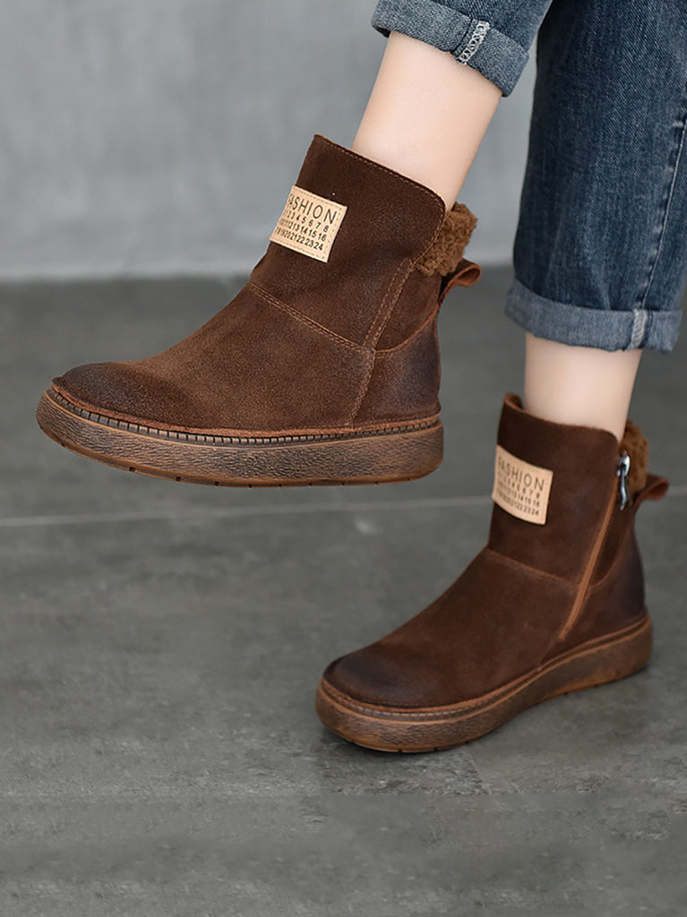 Bottines d'hiver en cuir massif doublées de polaire pour femmes