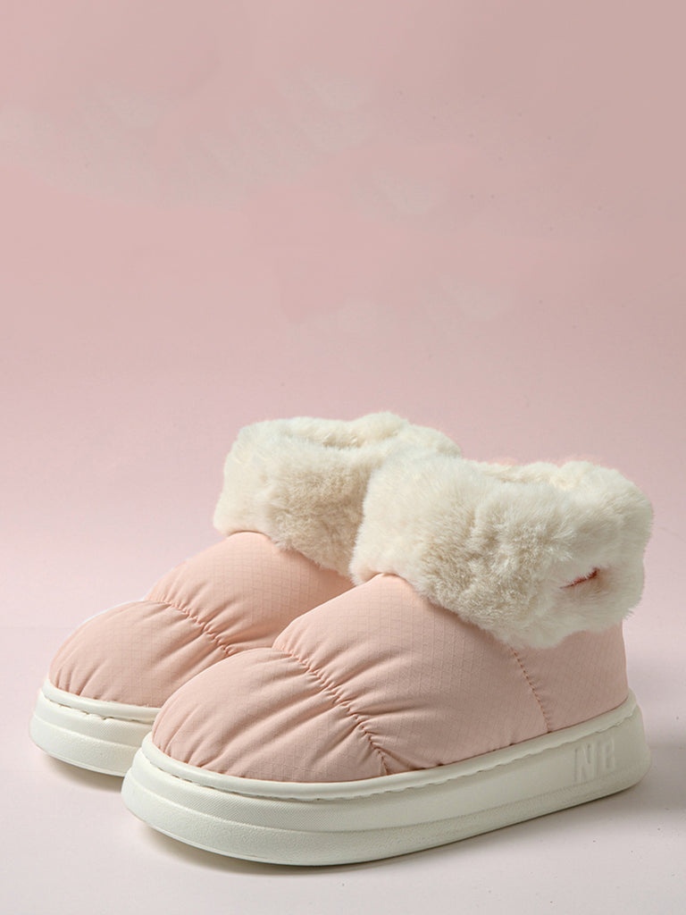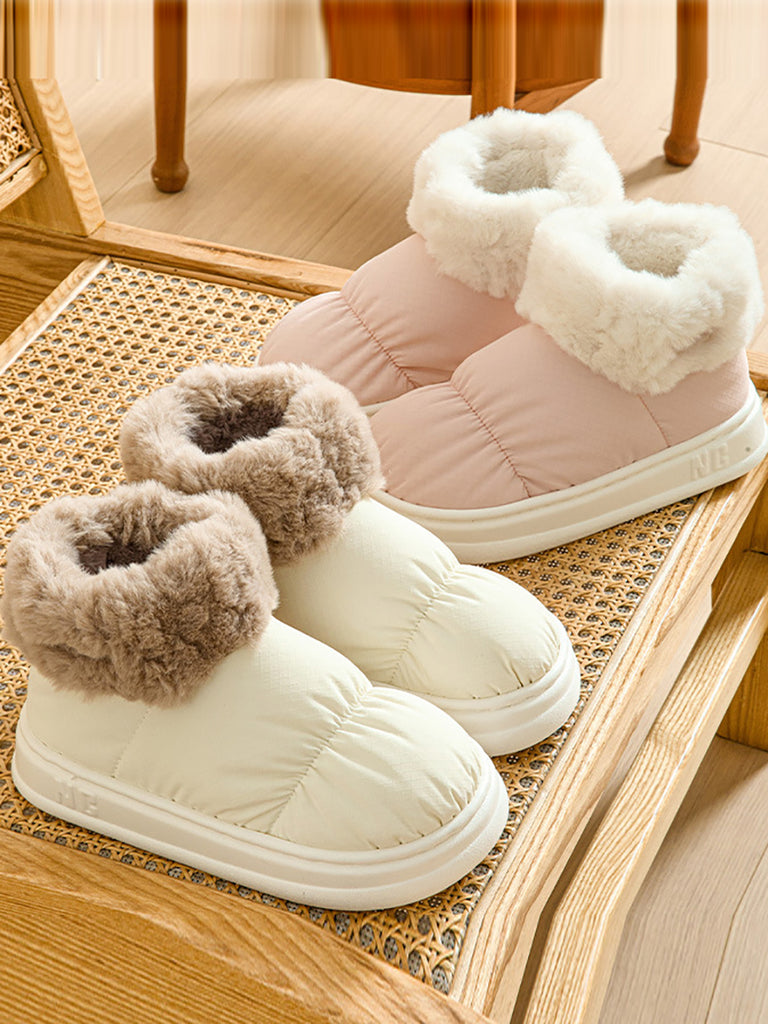 Chaussures à plateforme d'intérieur doublées de polaire solide pour couple