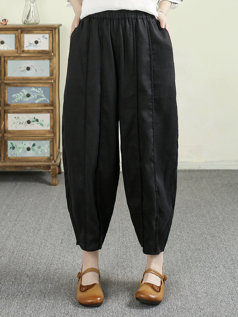 Pantalon large en ramie à bords bruts pour femme, porté l'été