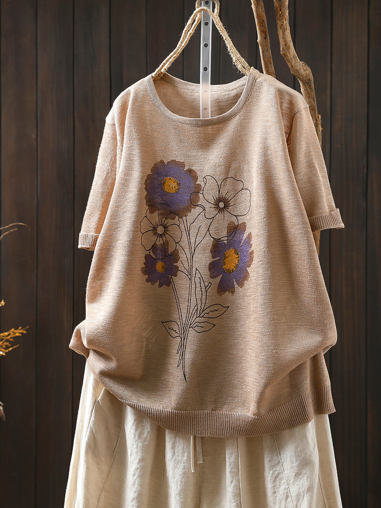 5 paires de chaussettes courtes d'été à fleurs artistiques pour femmes