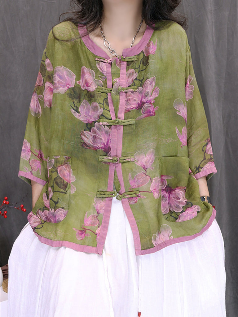 8 paires de chaussettes jacquard à fleurs artistiques pour femmes