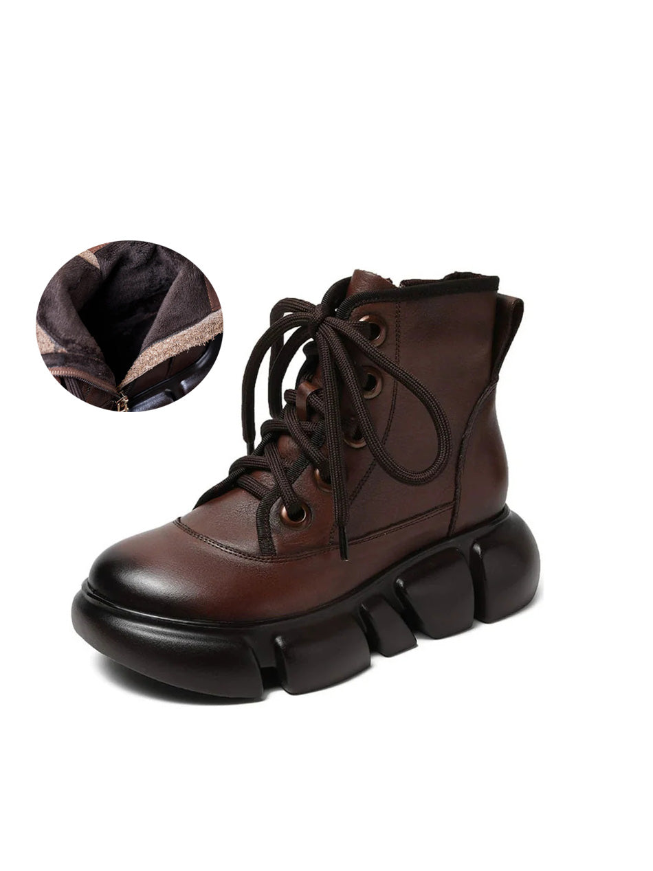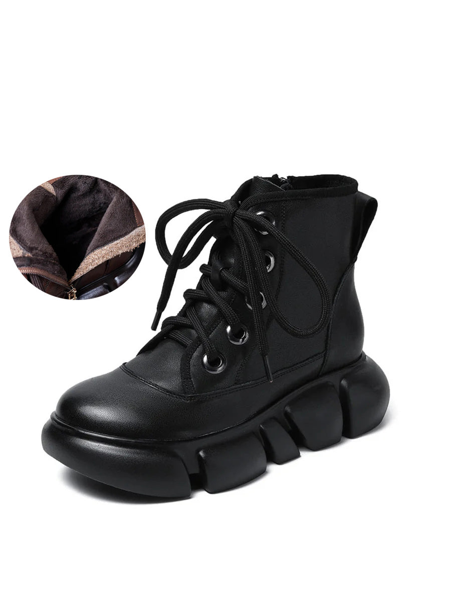 Bottes Martin à plateforme en cuir de couleur pure pour femmes