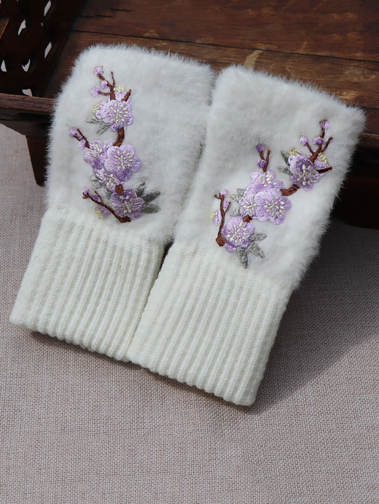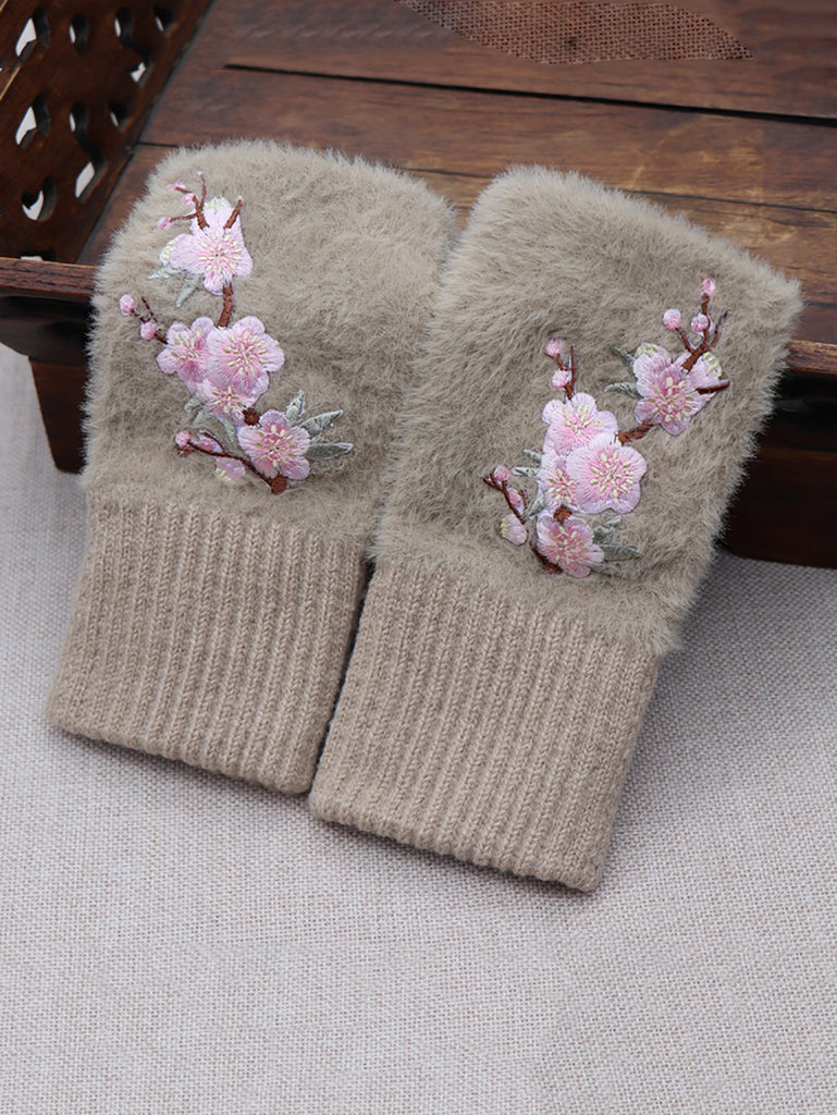Gants polaires d'hiver pour femmes, brodés de fleurs artistiques