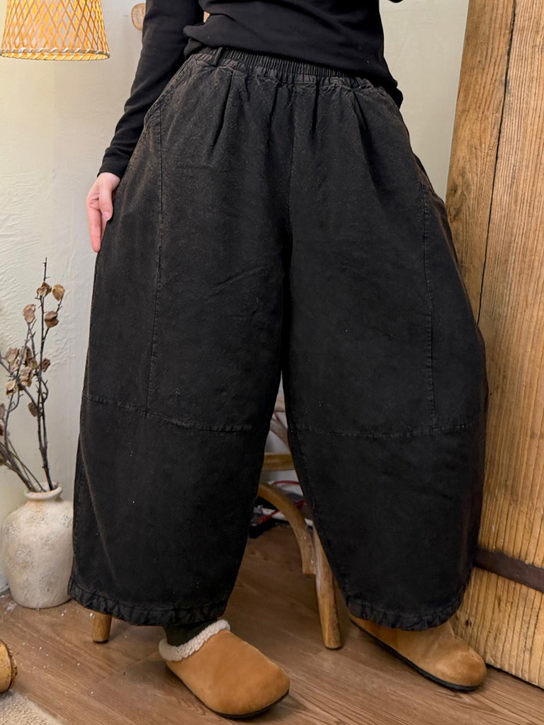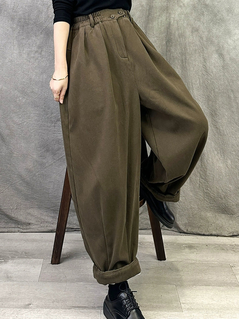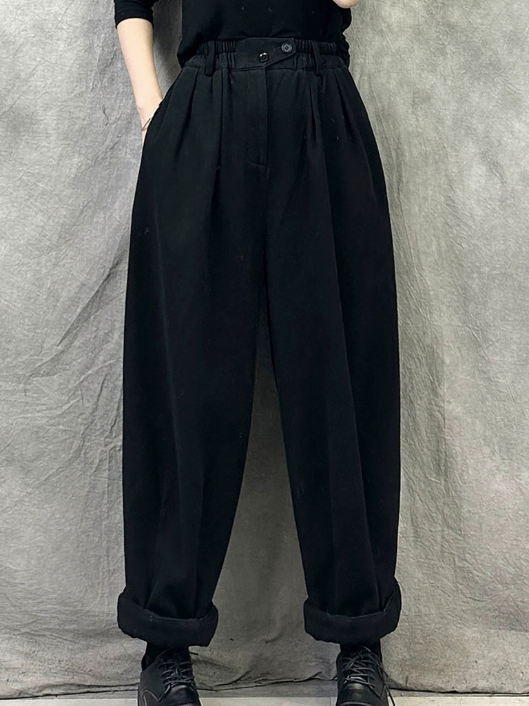 Pantalon harem doublé polaire uni, style décontracté hiver pour femme