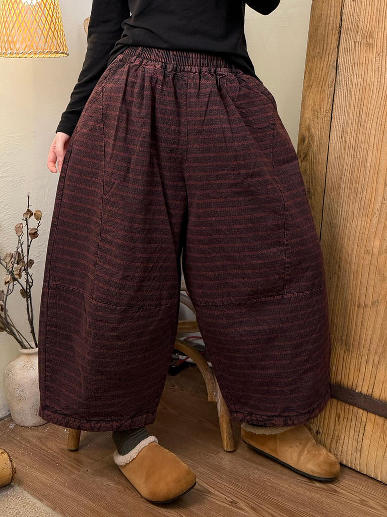 Pantalon droit rembourré rétro à carreaux et rayures pour femme