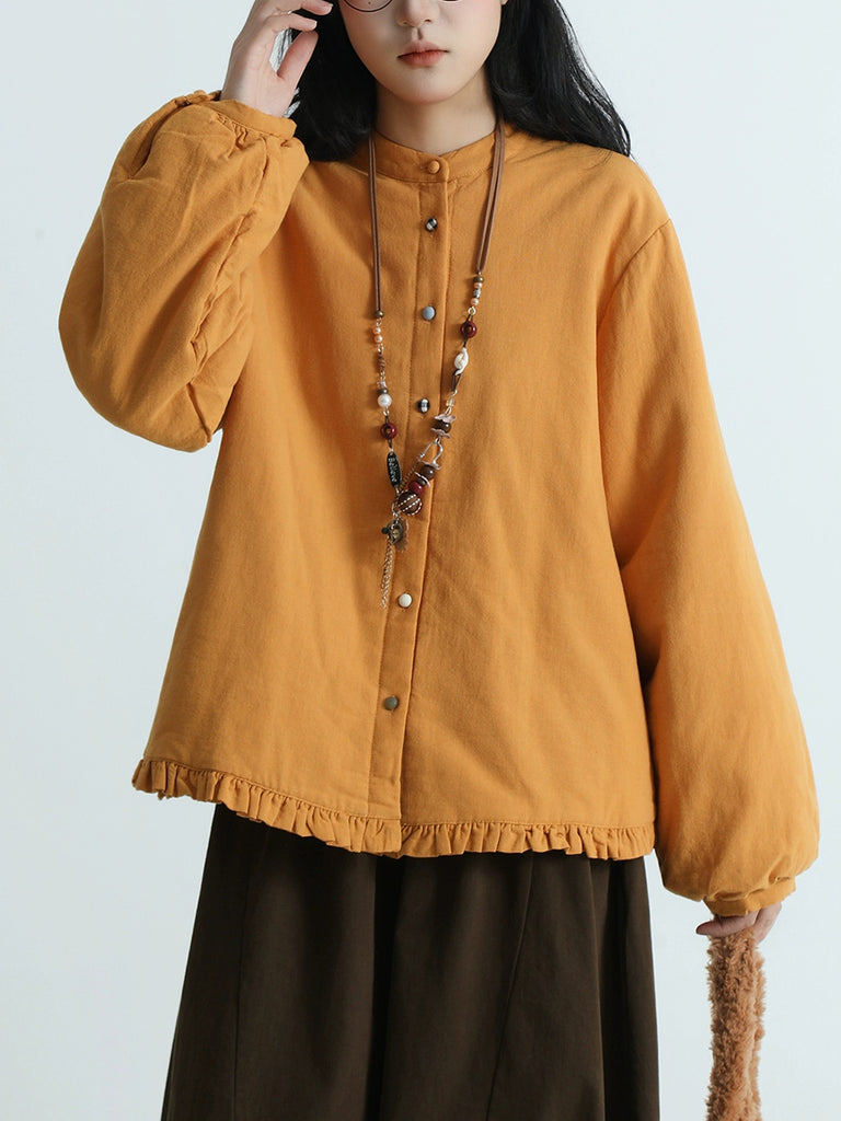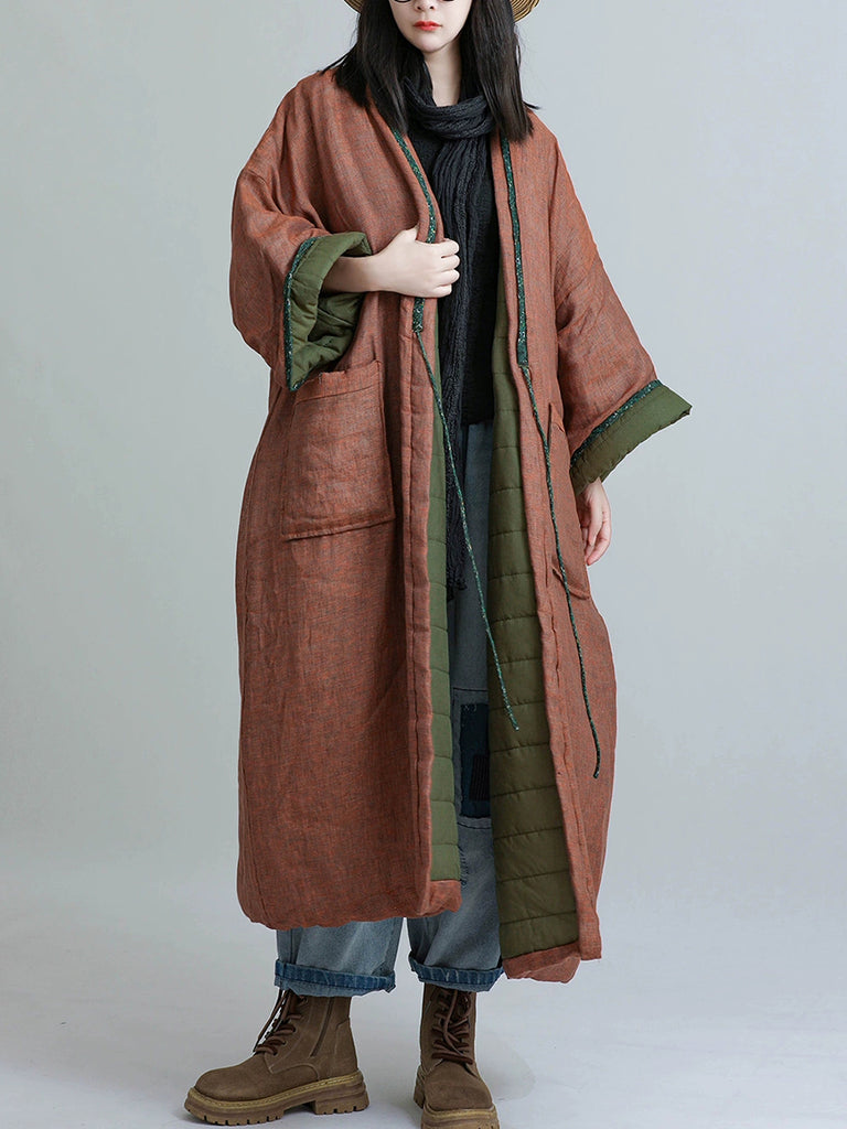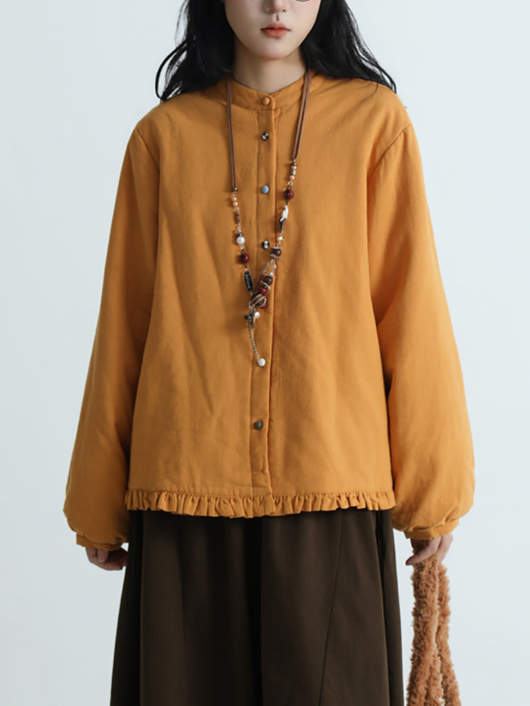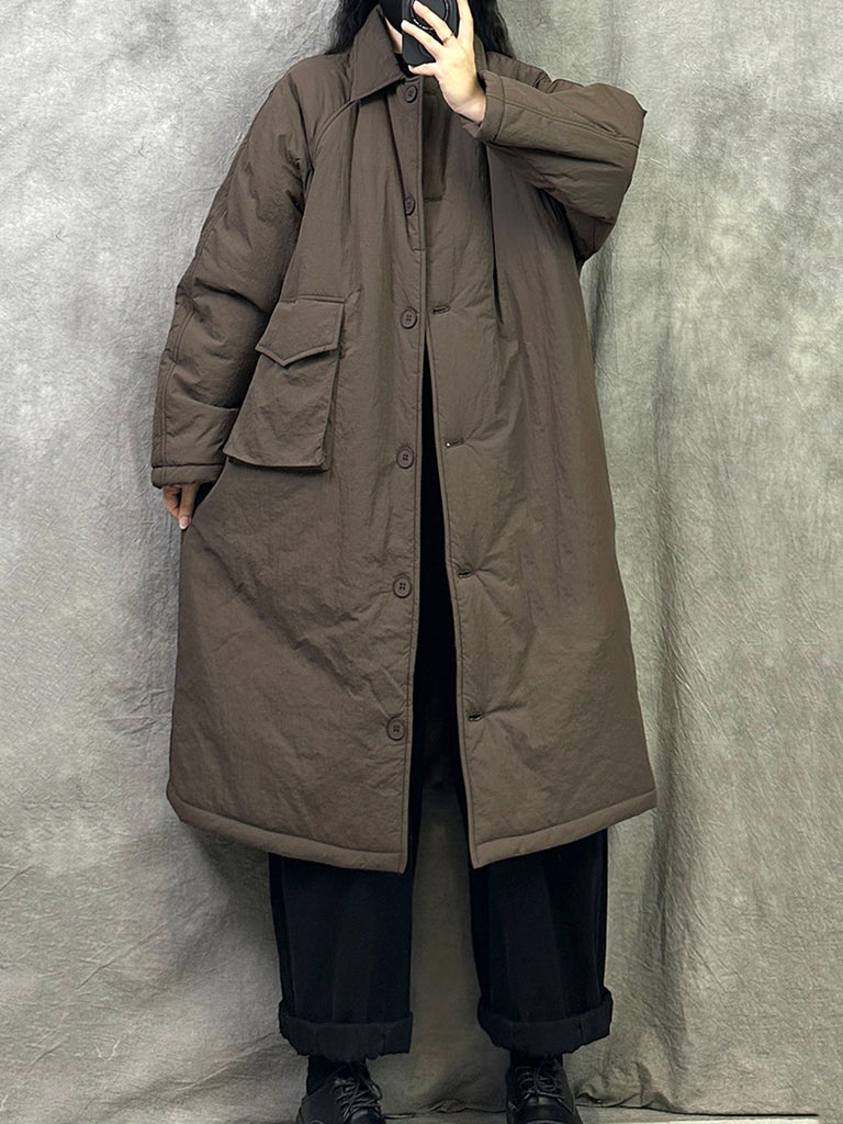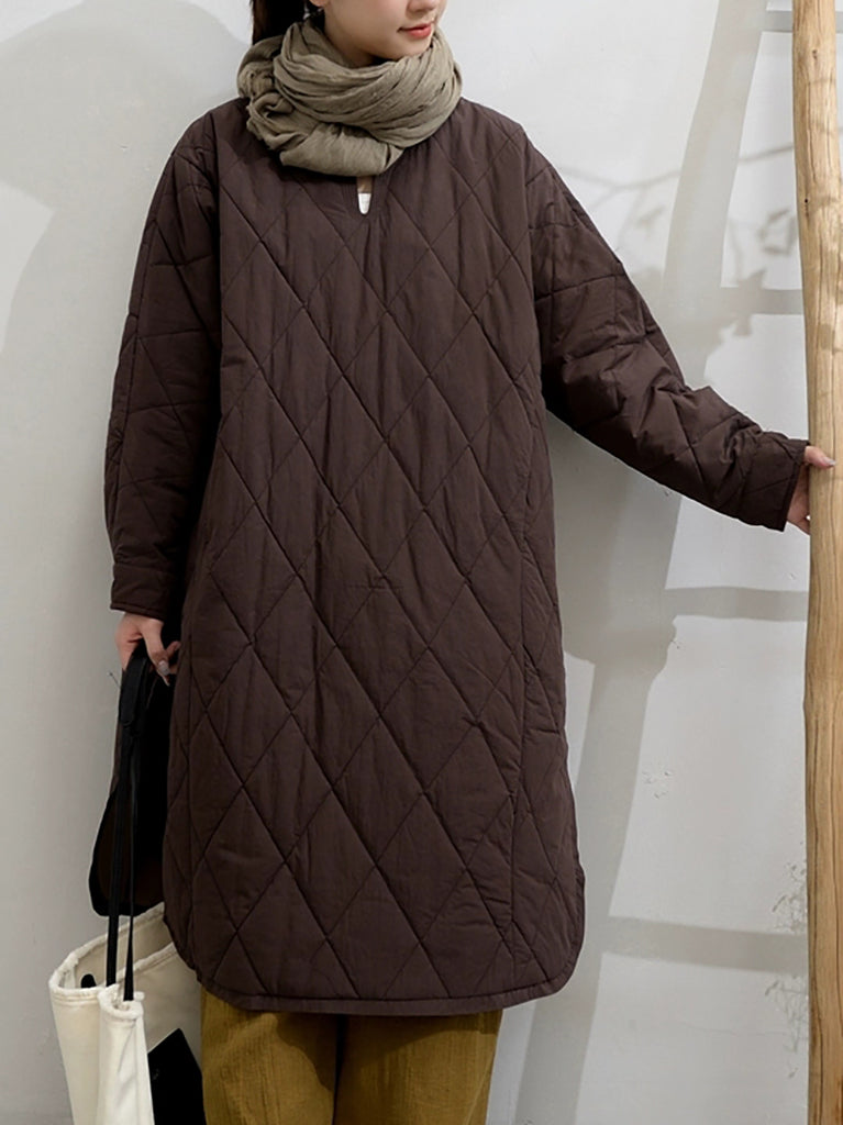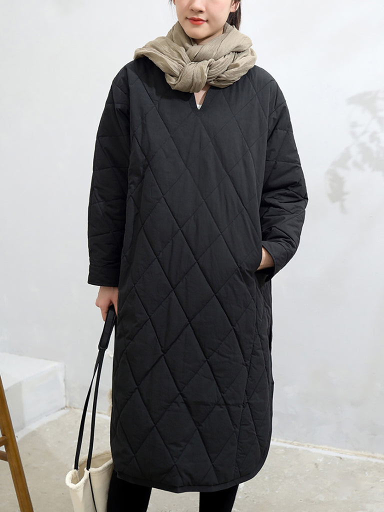 Manteau matelassé rétro d'hiver pour femme, col en V, couleur unie