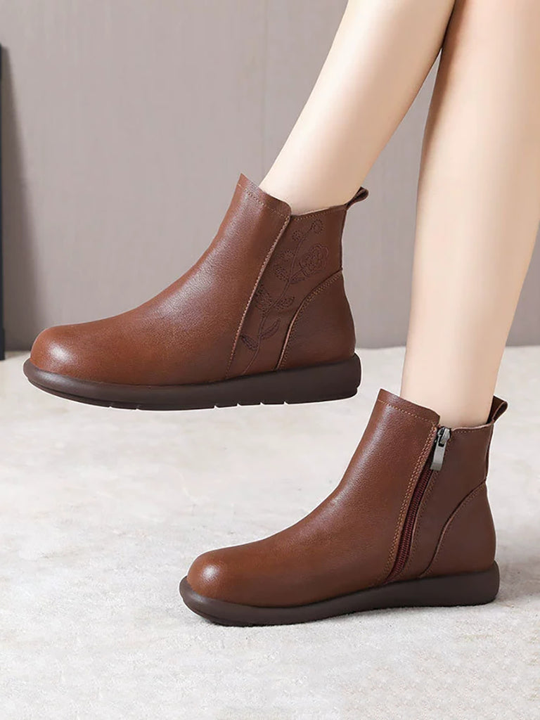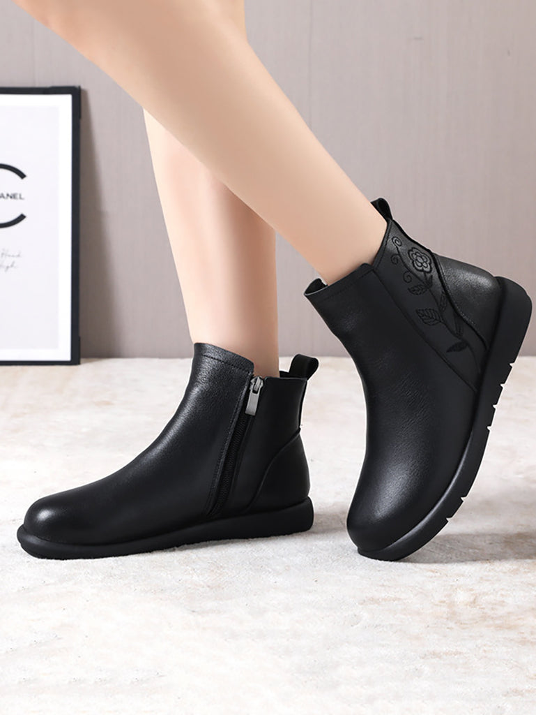 Bottes d'hiver pour femmes en cuir véritable à motif floral en relief