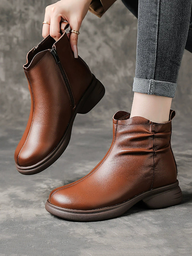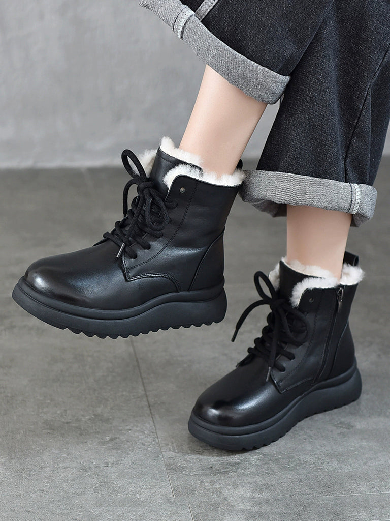 Bottines d'hiver pour femmes en cuir véritable doublées polaire
