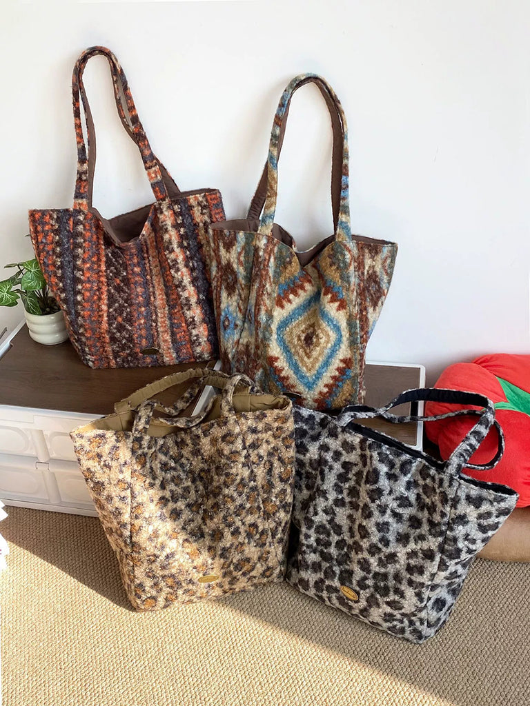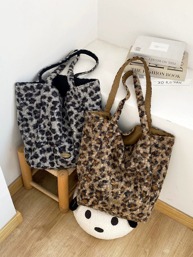 Sac bandoulière en polaire imprimé léopard artistique pour femme