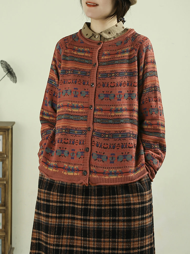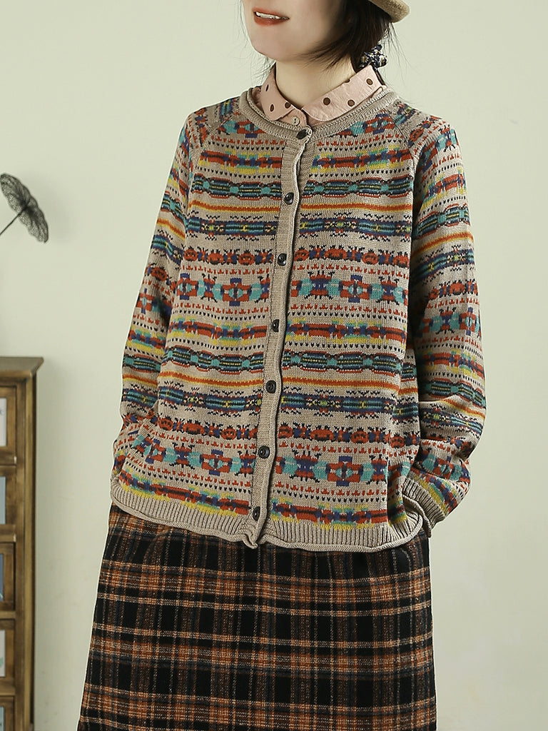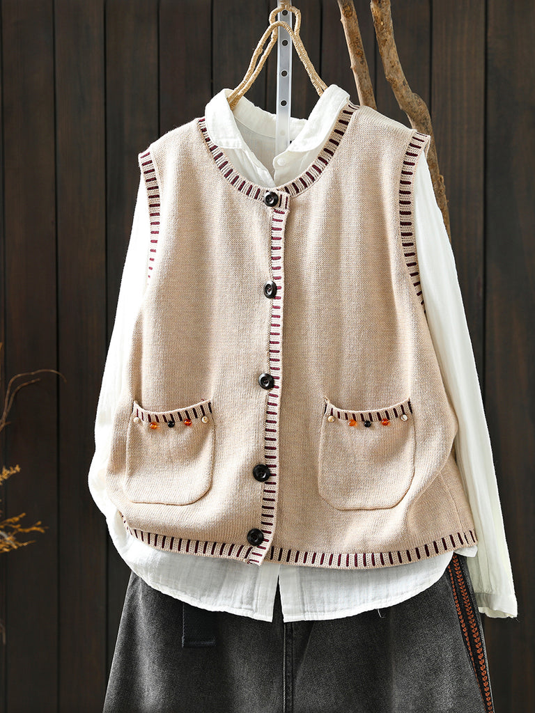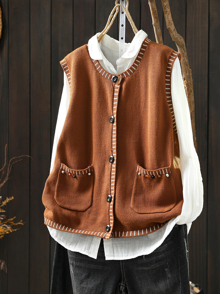 Gilet tricoté à col rond pour femme, style automne, style artistique