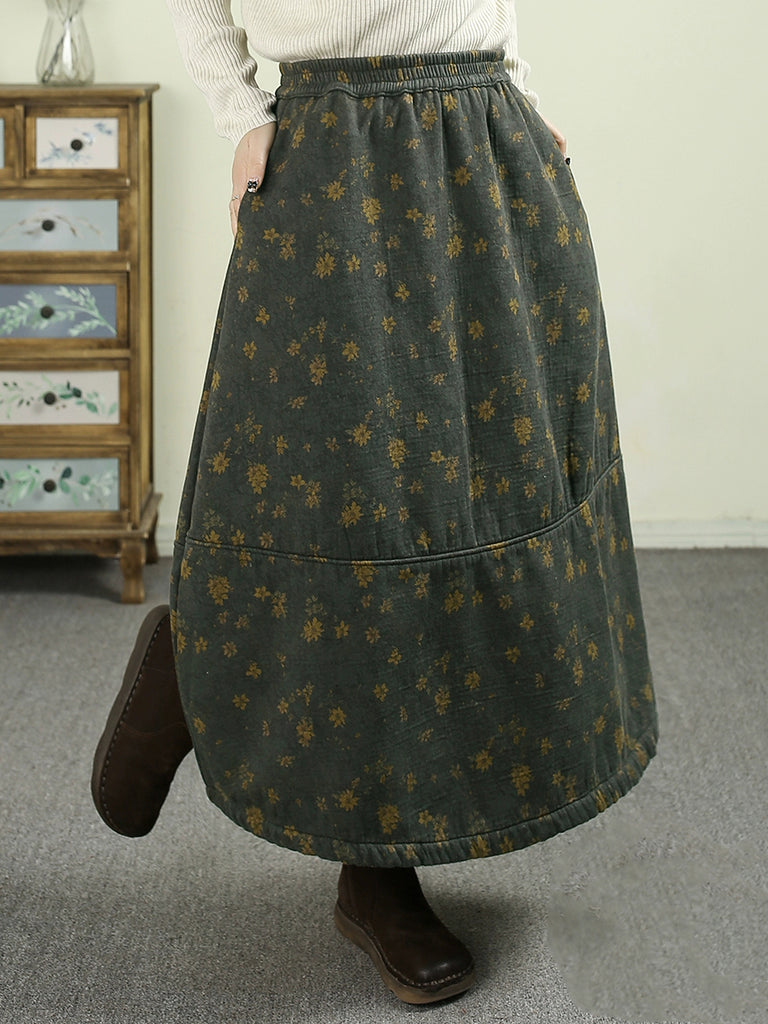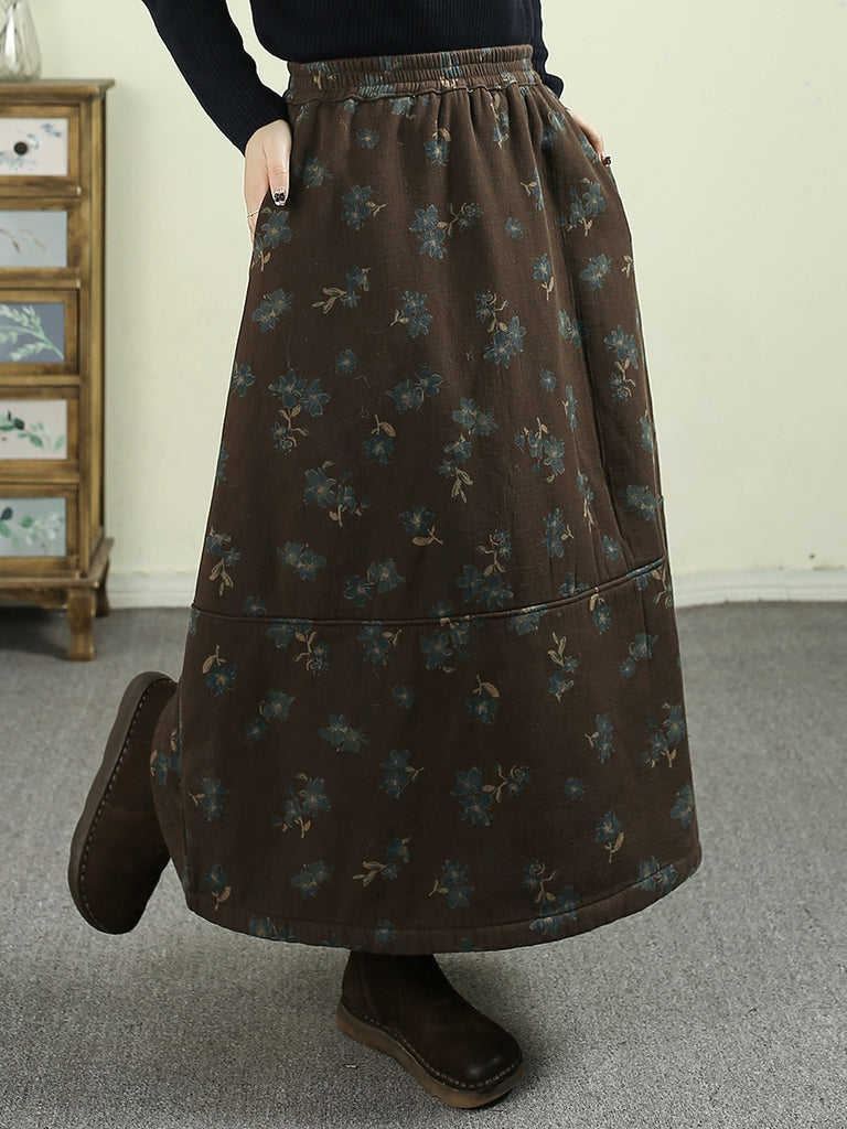 Jupe trapèze à fleurs doublée polaire pour femme, 100 % coton