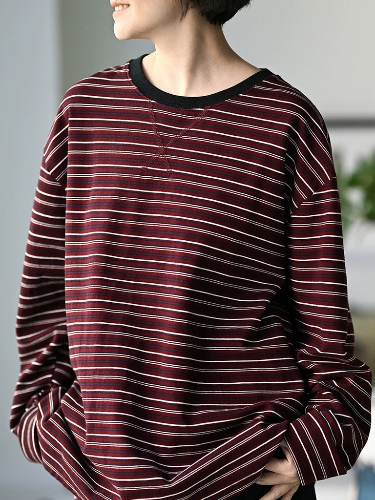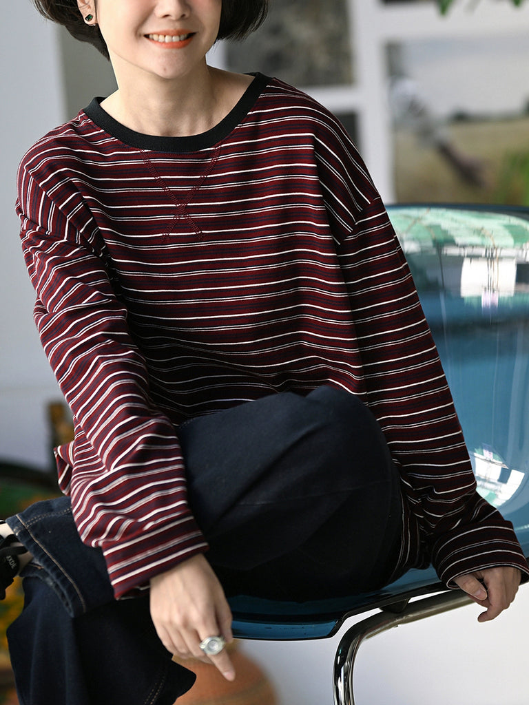 Chemisier en coton à rayures artistiques pour femme, col rond