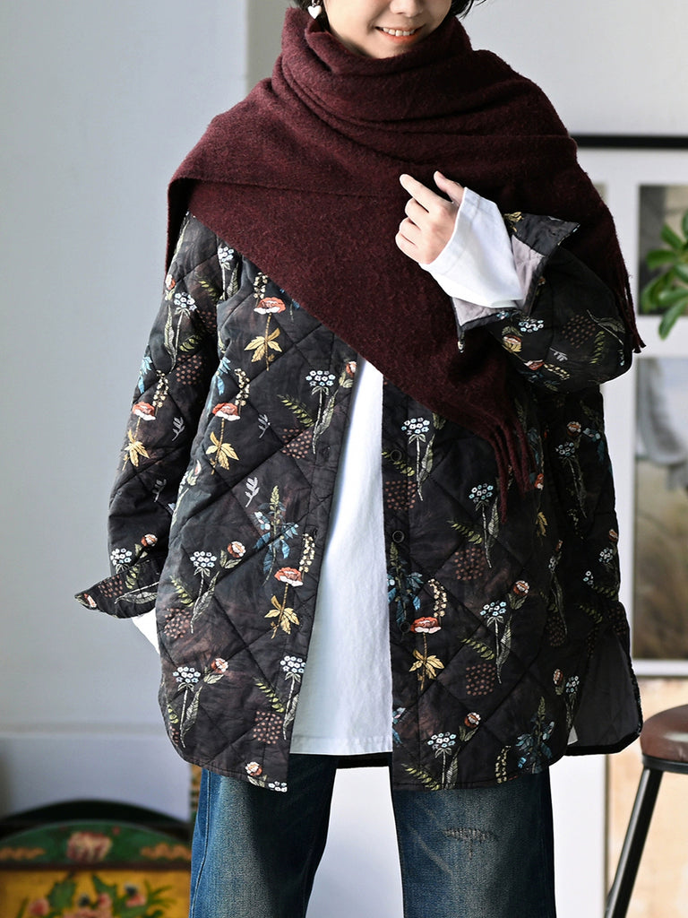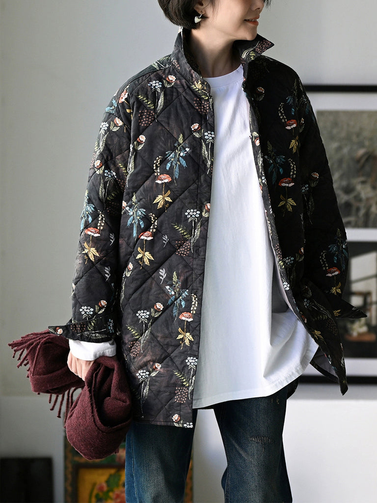 Manteau d'hiver rembourré à fleurs artistiques pour femme