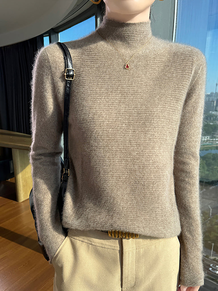 Pull à col roulé mi-long uni, style artistique, pour femme, automne
