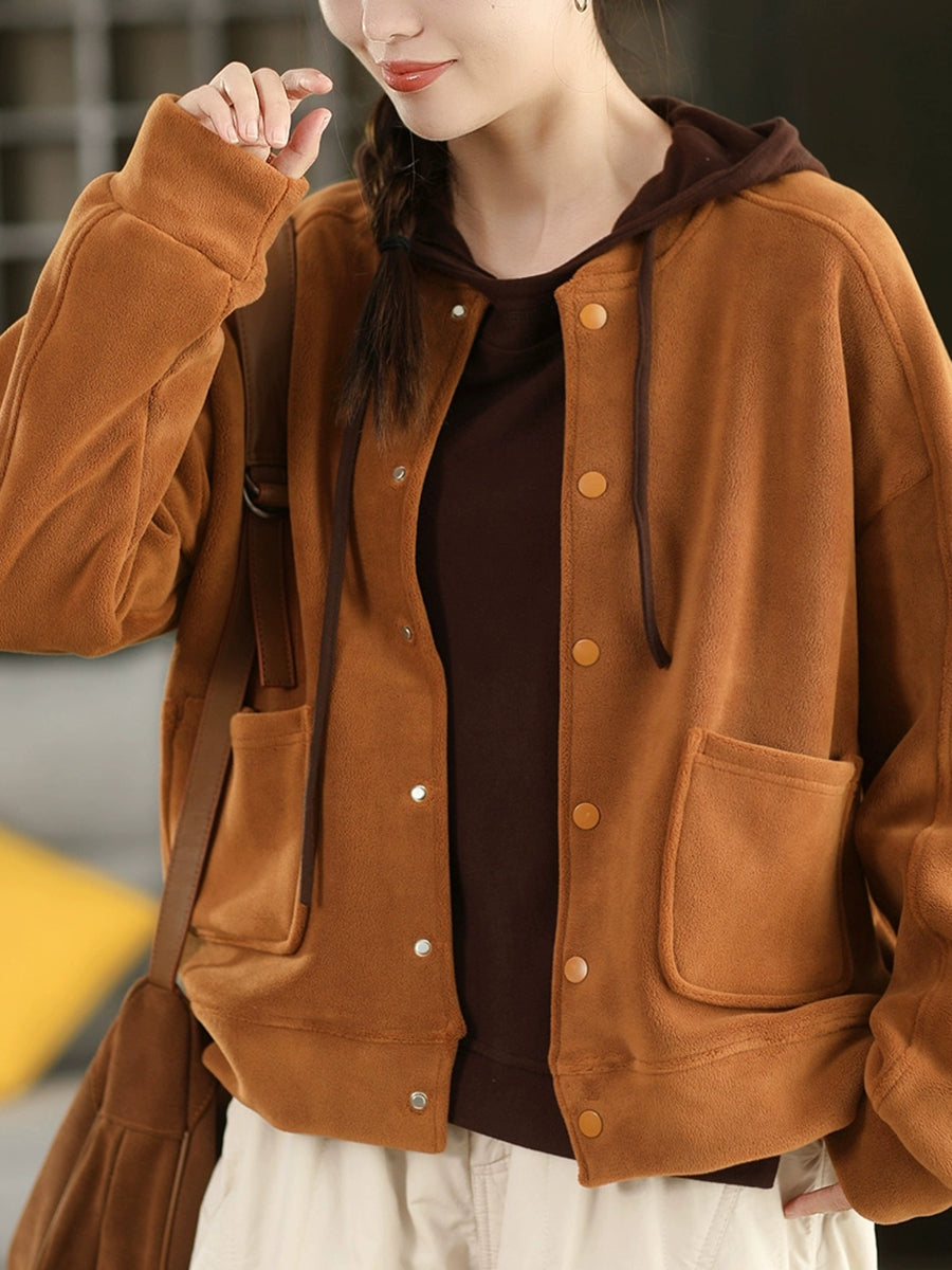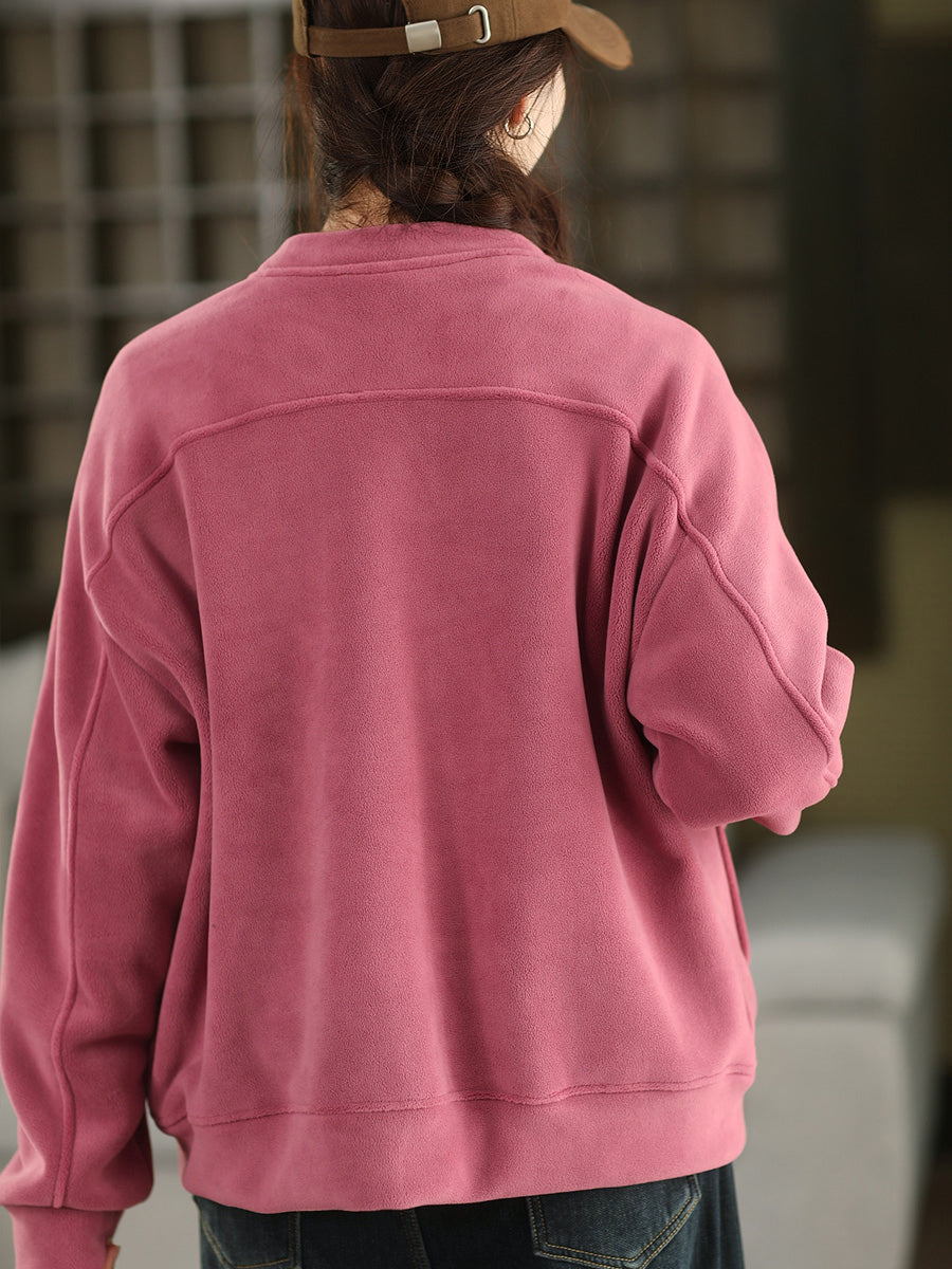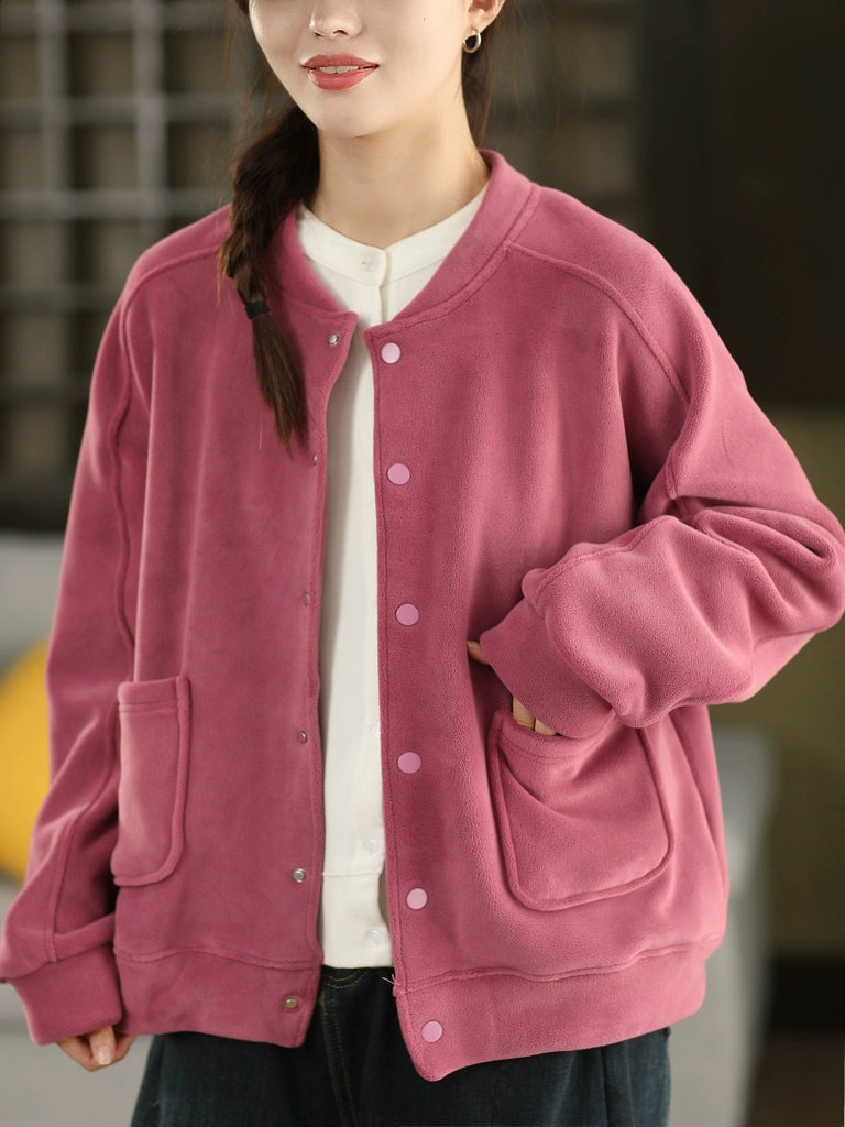 Manteau polaire d'hiver décontracté pour femme, couleur unie, col rond