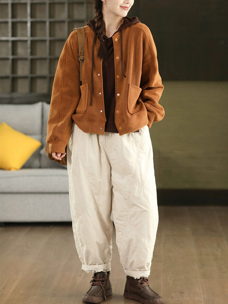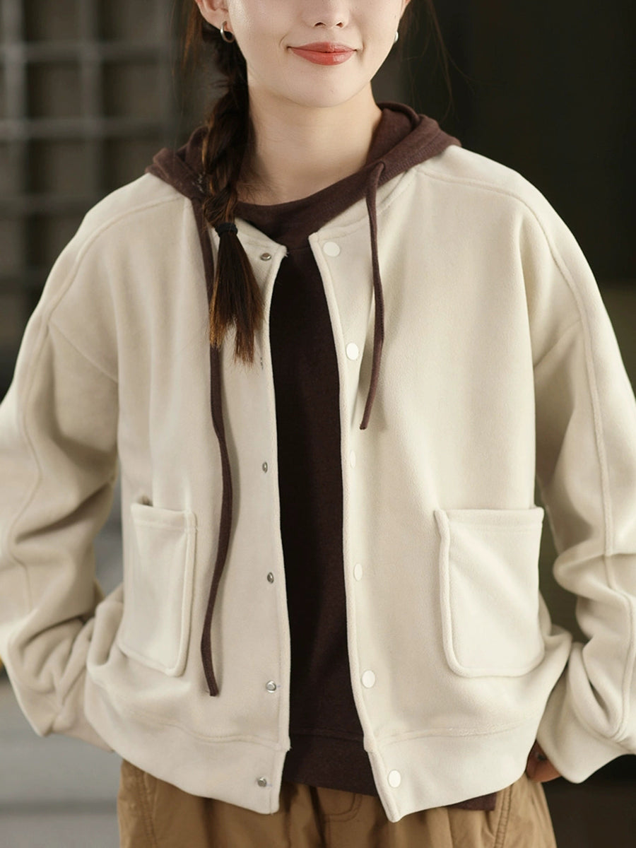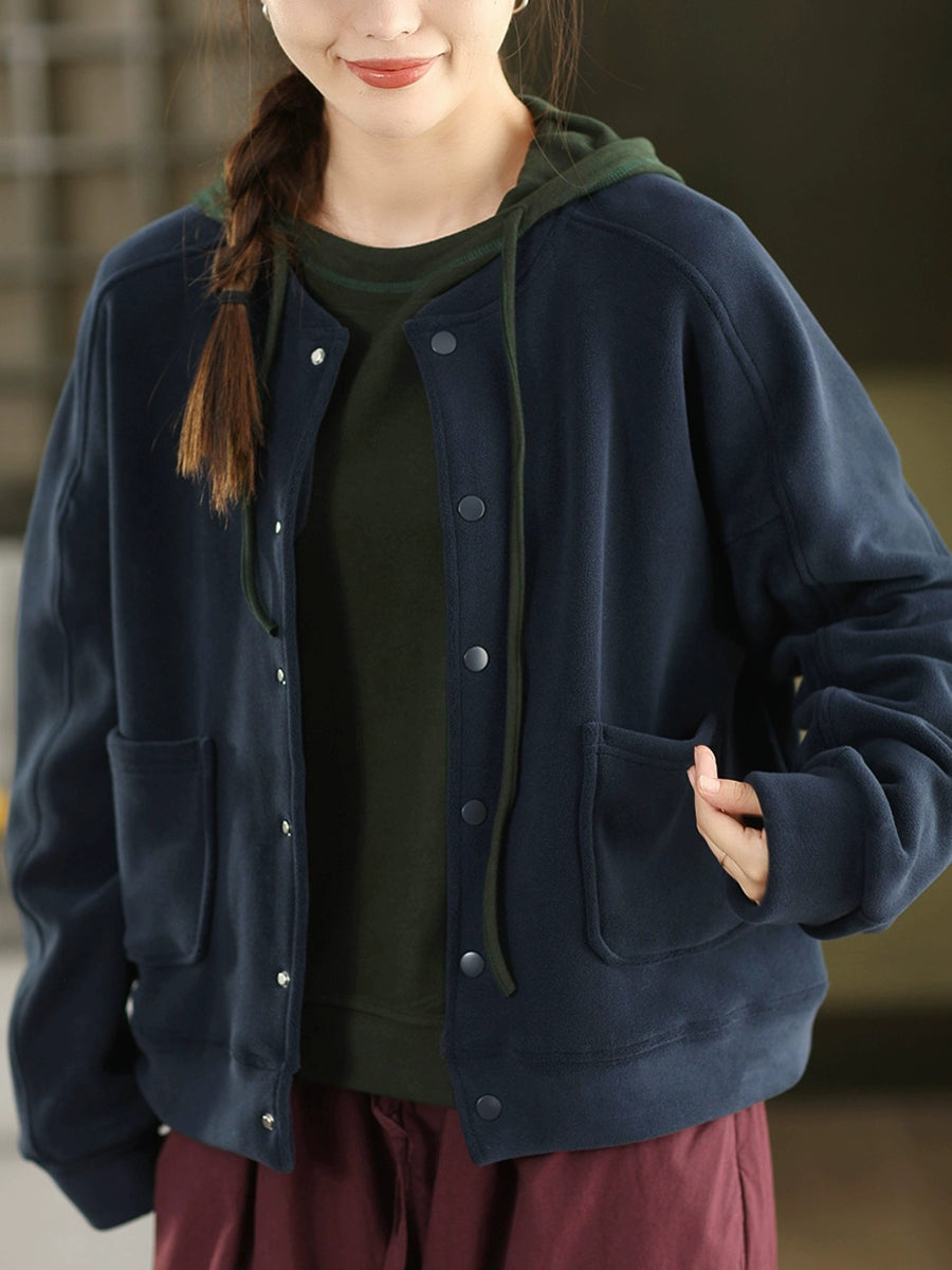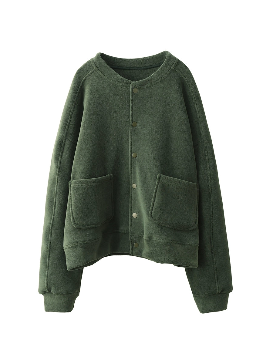 Manteau polaire d'hiver décontracté pour femme, couleur unie, col rond