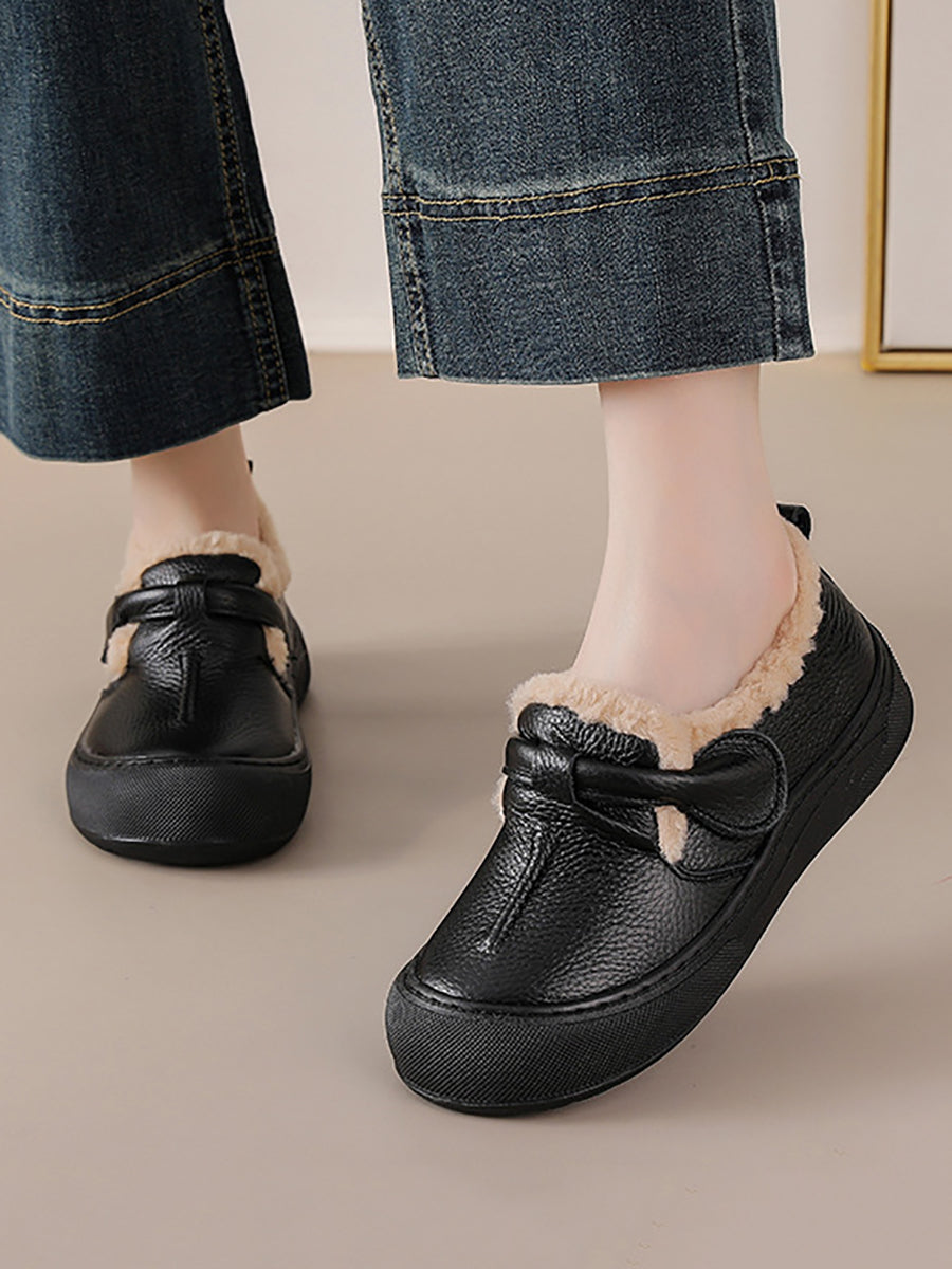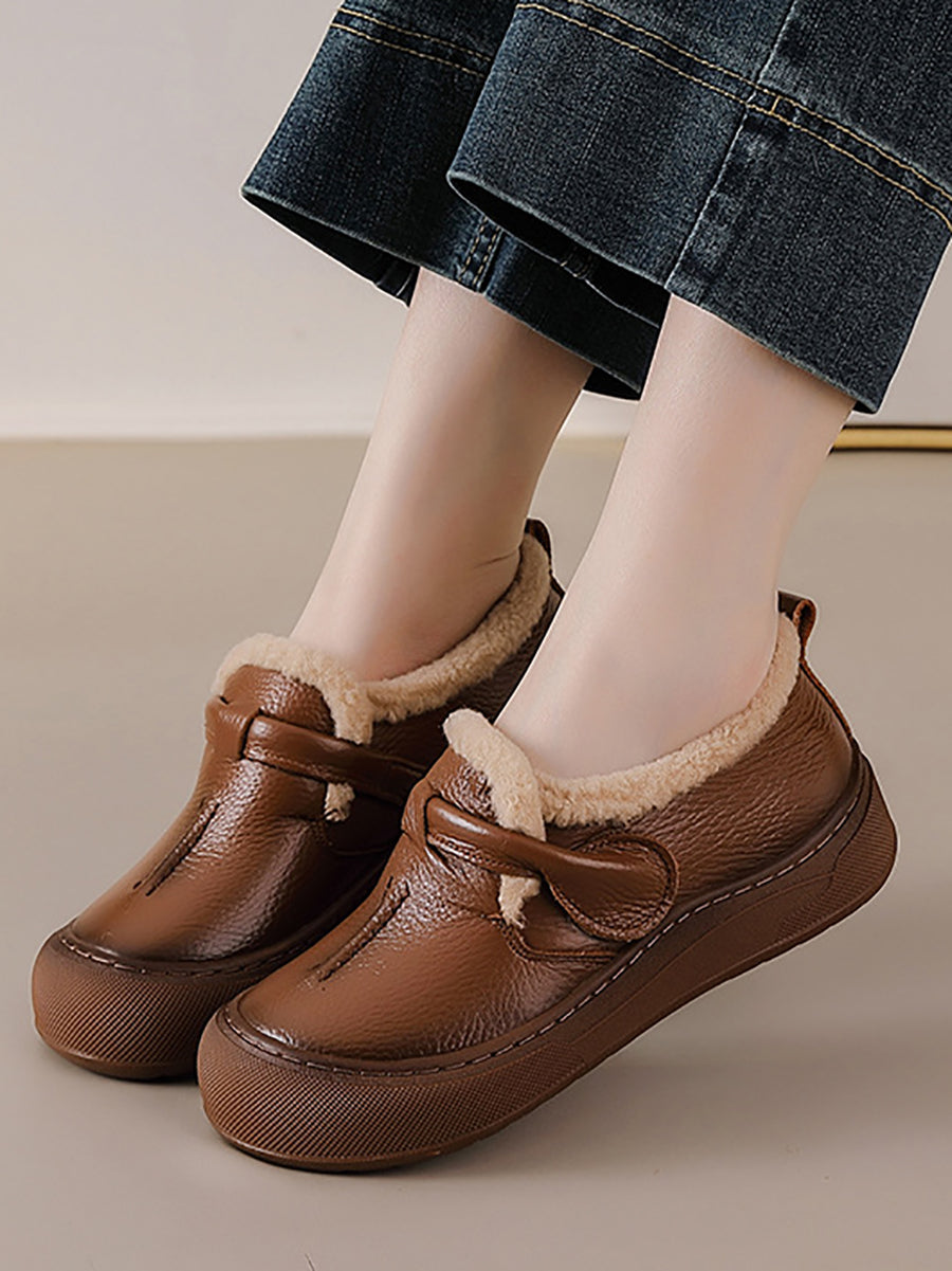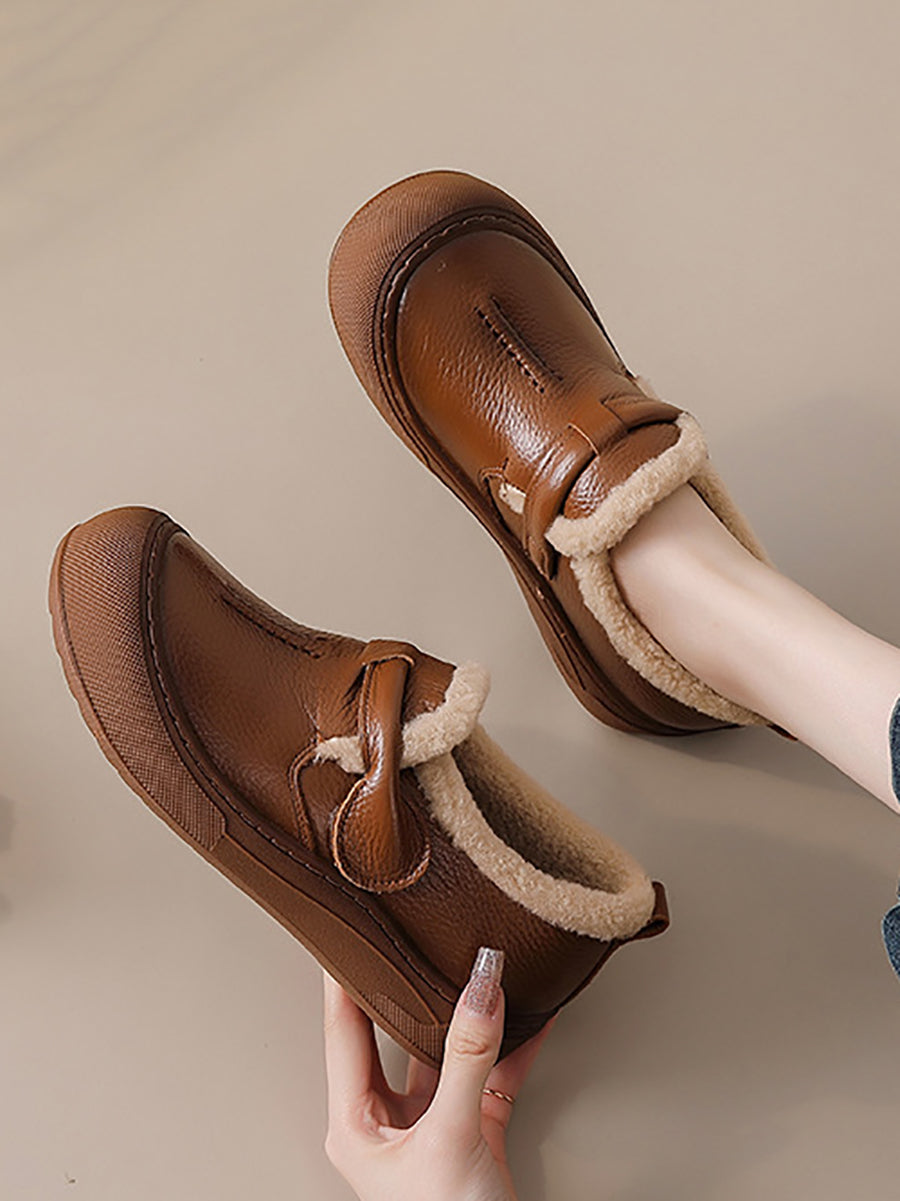 Chaussures d'hiver pour femmes en cuir véritable doublées de polaire
