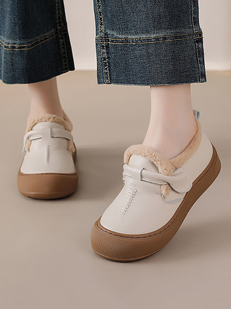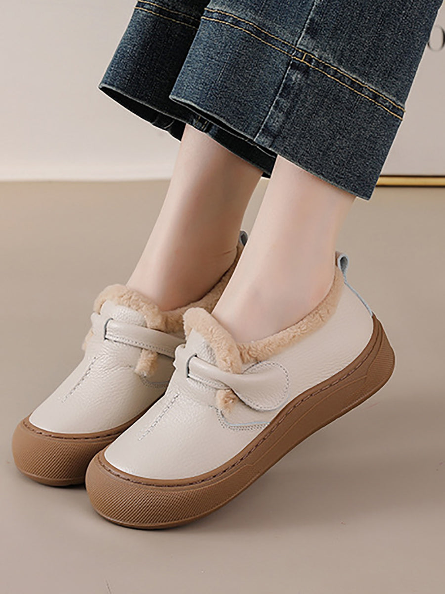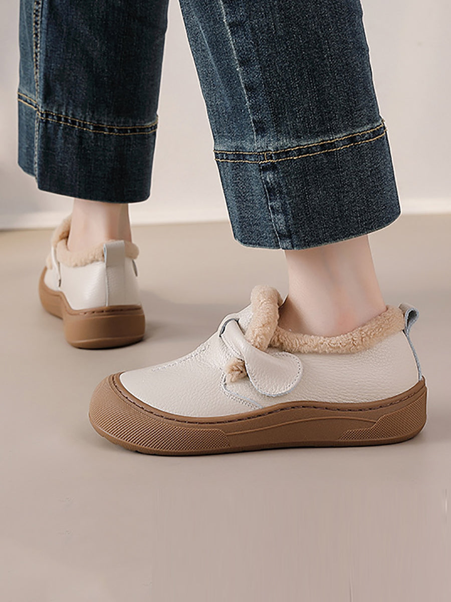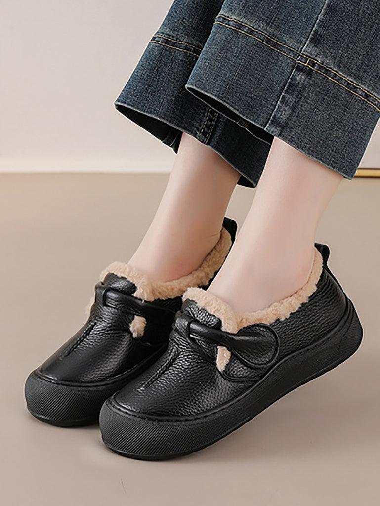 Chaussures d'hiver pour femmes en cuir véritable doublées de polaire