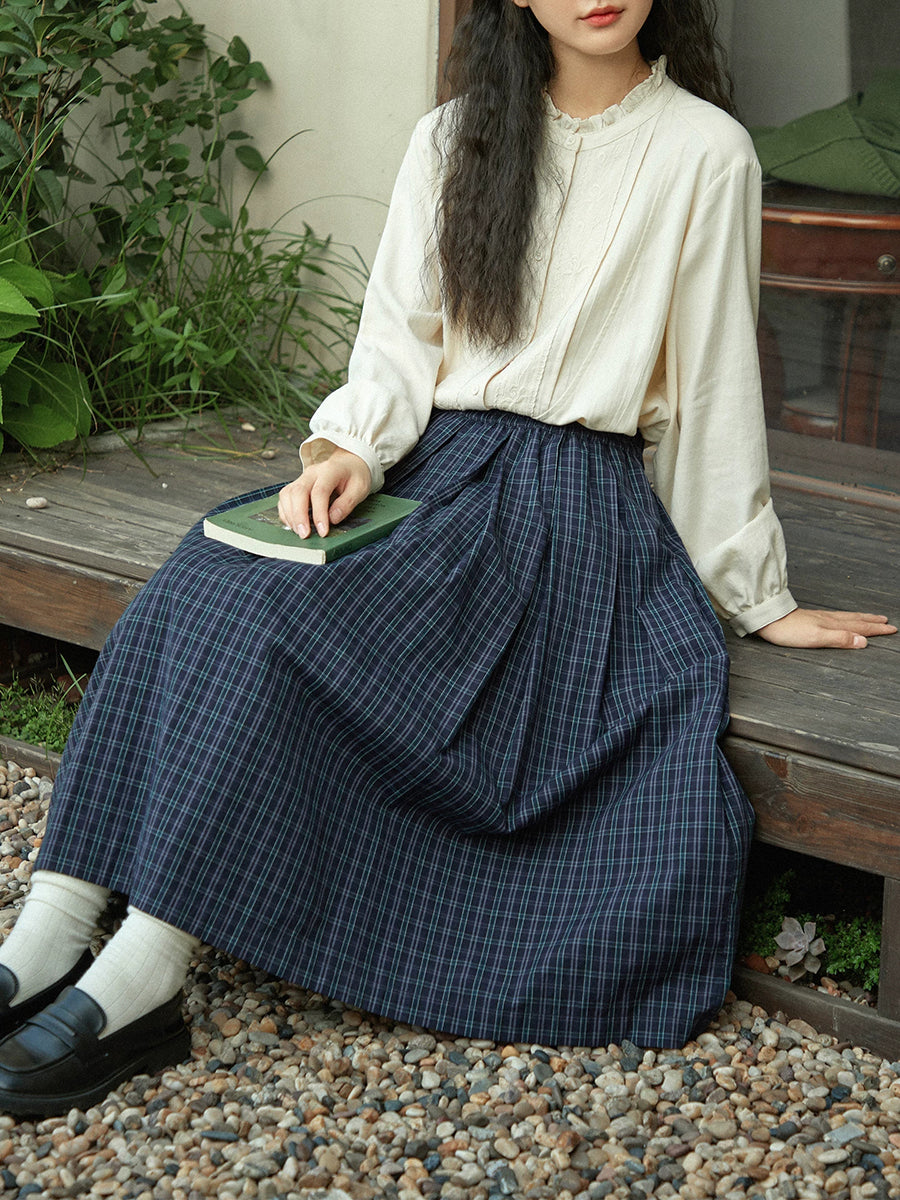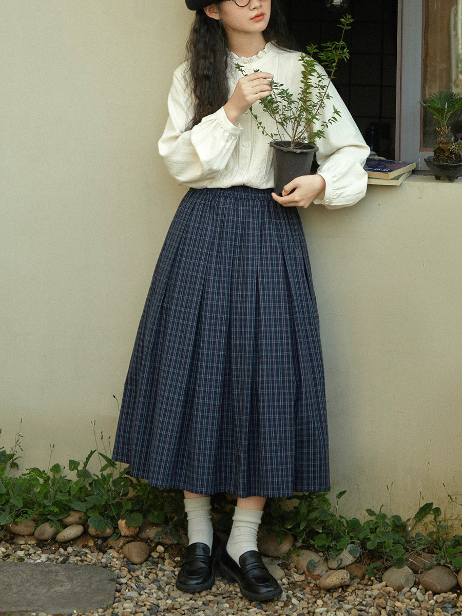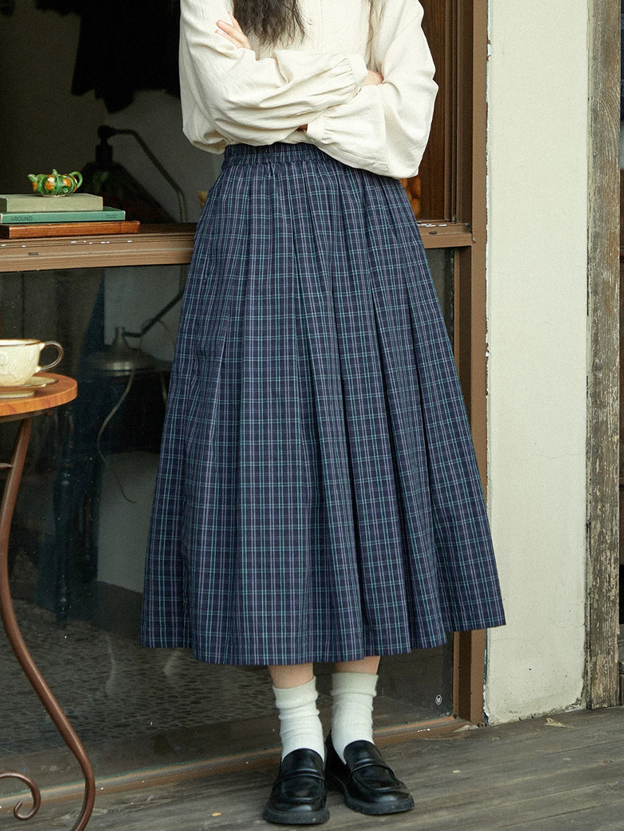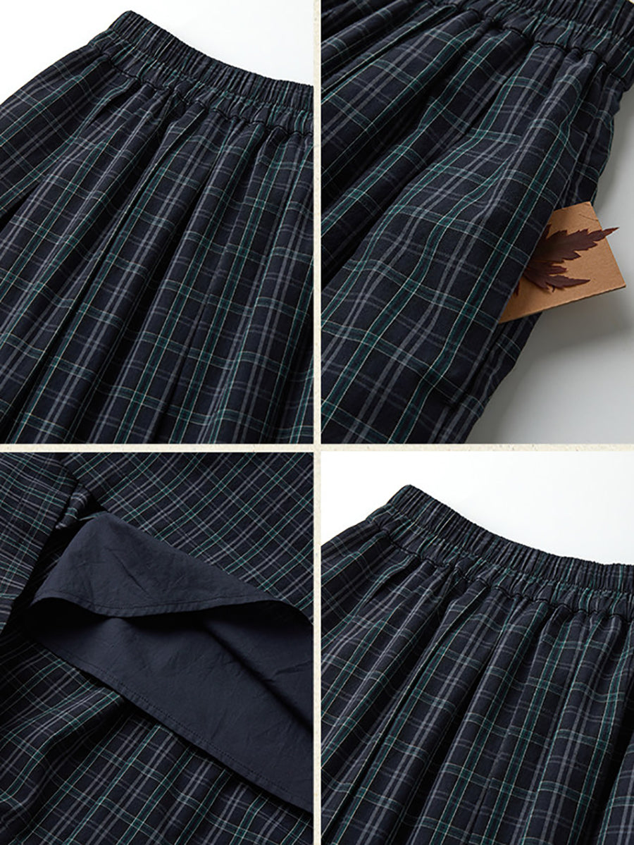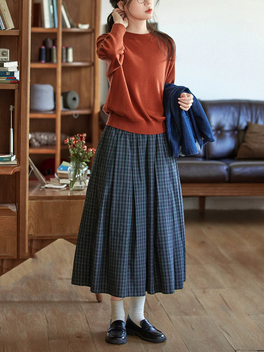 Jupe plissée trapèze à carreaux vintage pour femme, hiver