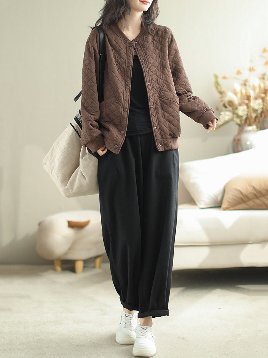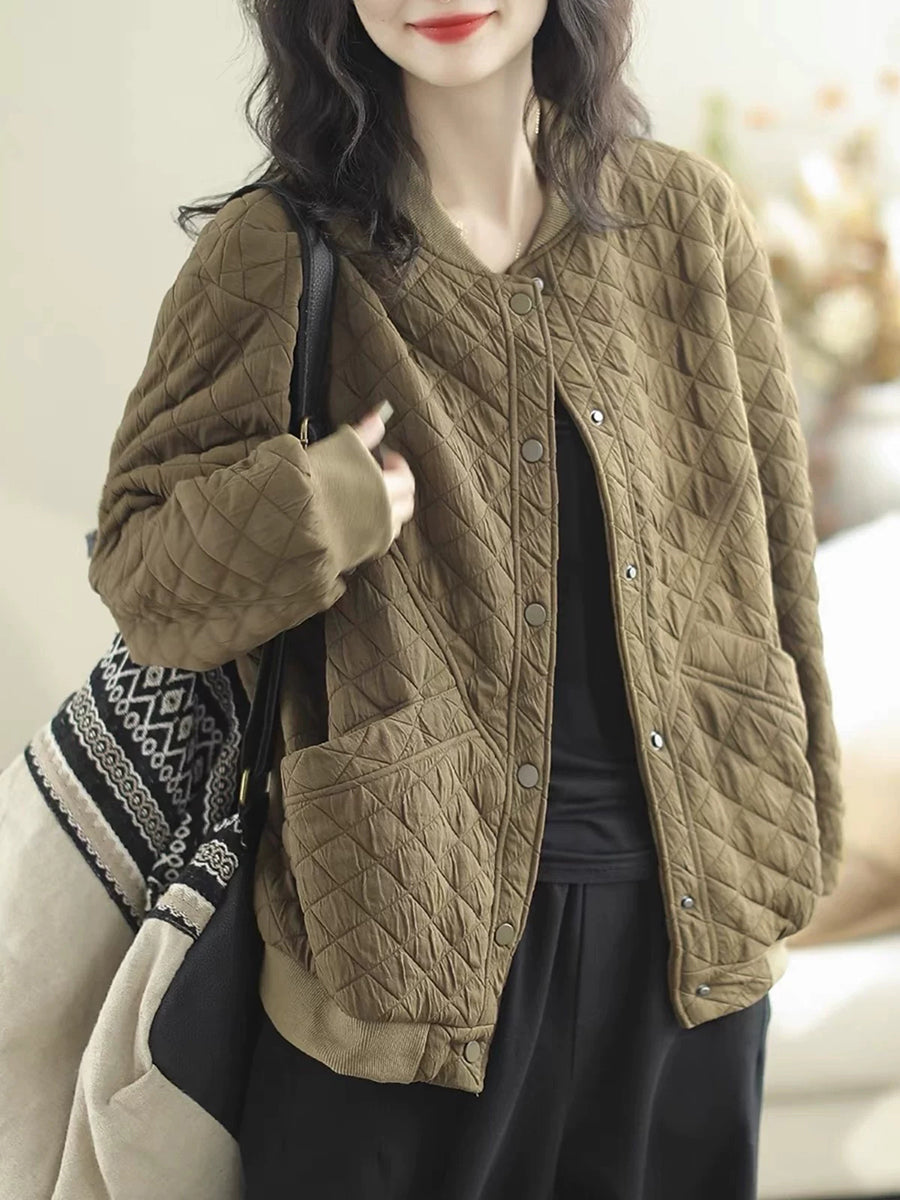 Manteau d'hiver rétro pour femme, col rond, matelassé, couleur unie