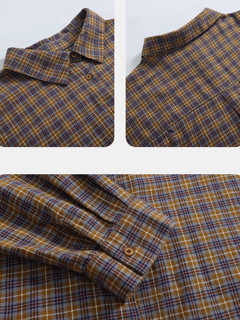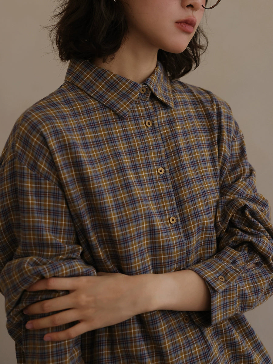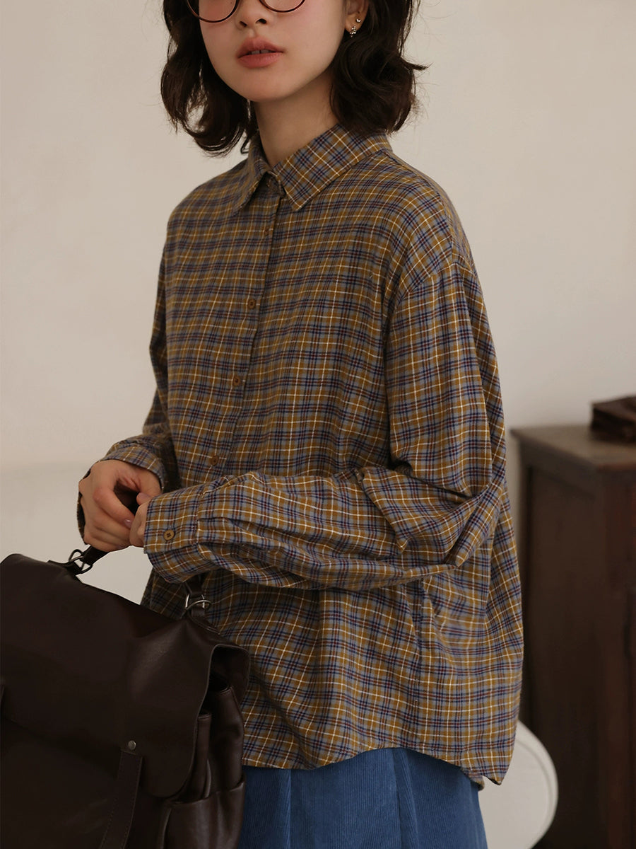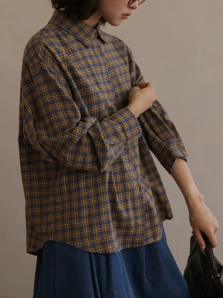 Chemise à carreaux artistiques pour femme, 100 % coton, col rabattu