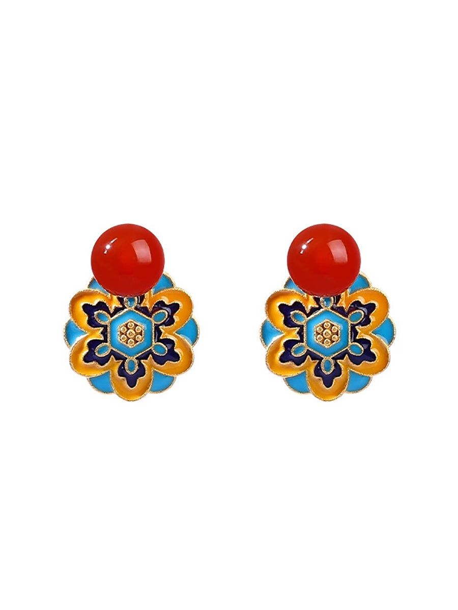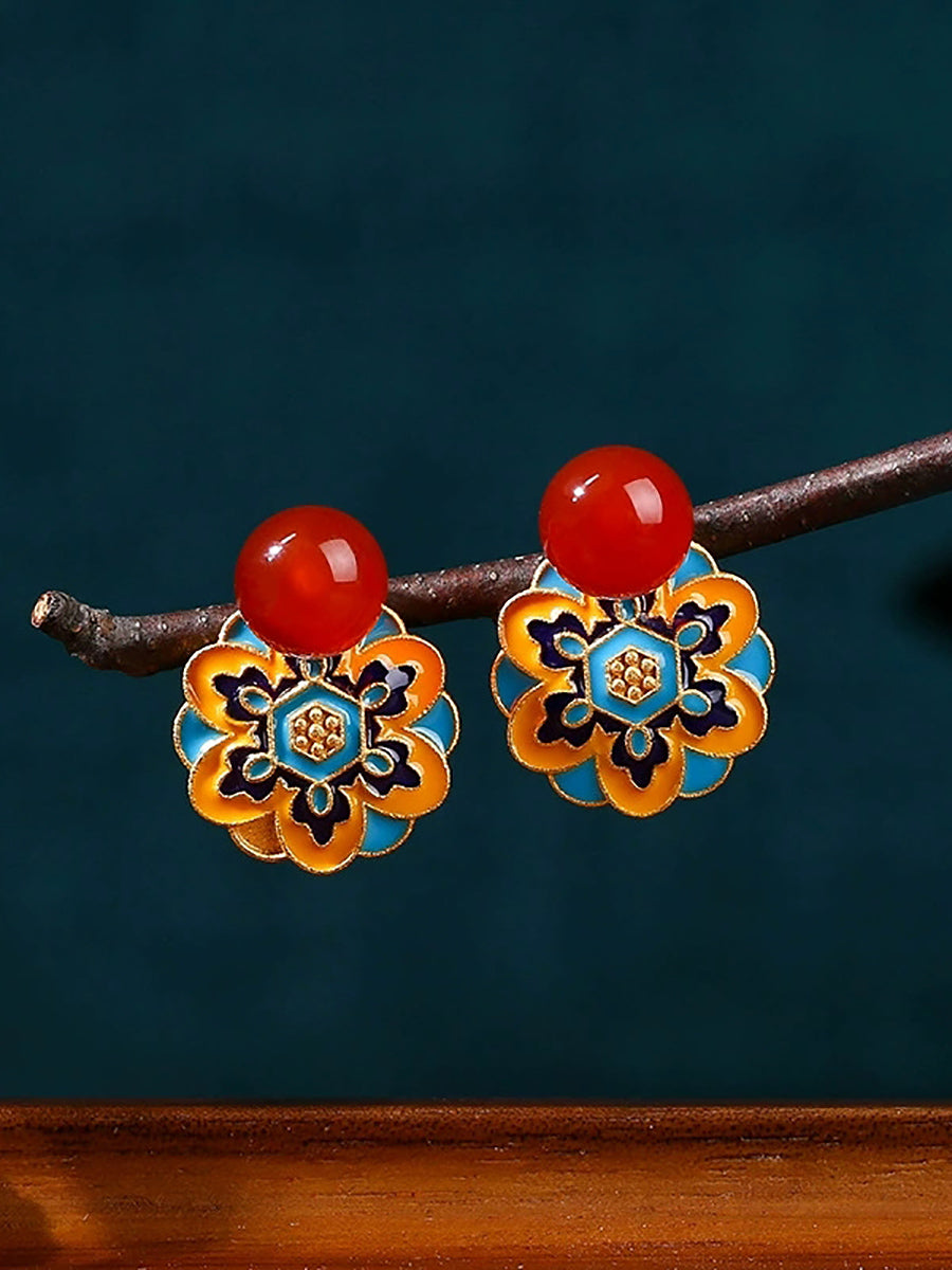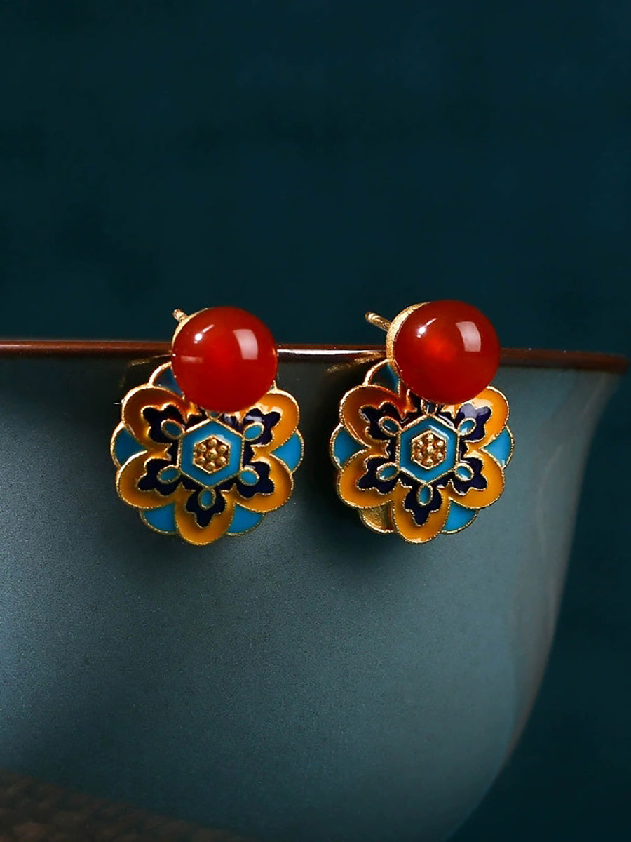 Boucles d'oreilles vintage en alliage, motif lotus, émail jade et alliage