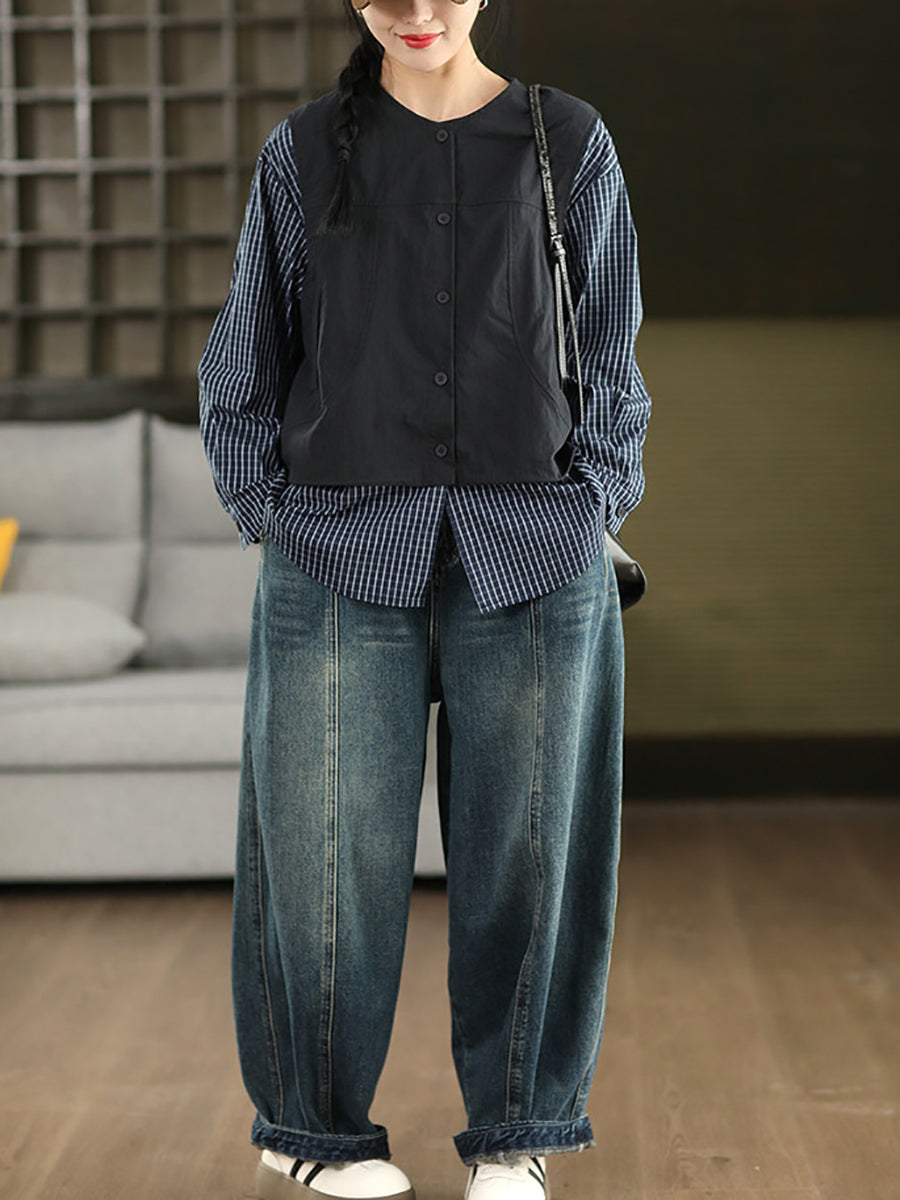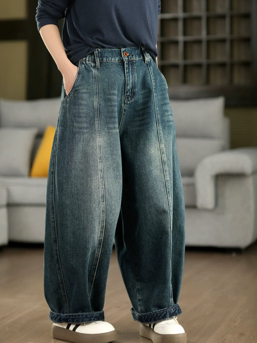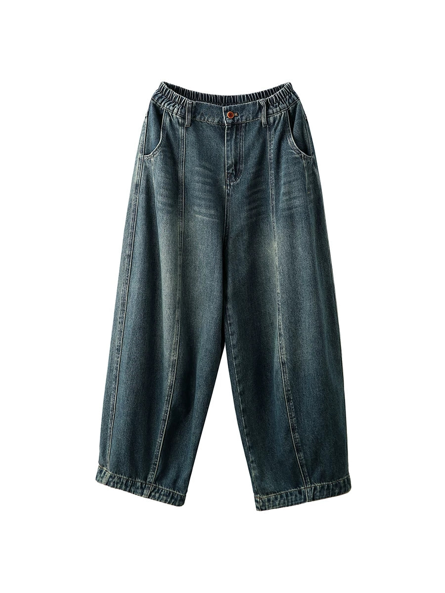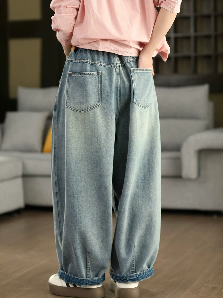 Bloomers en denim délavé vintage pour femmes, printemps