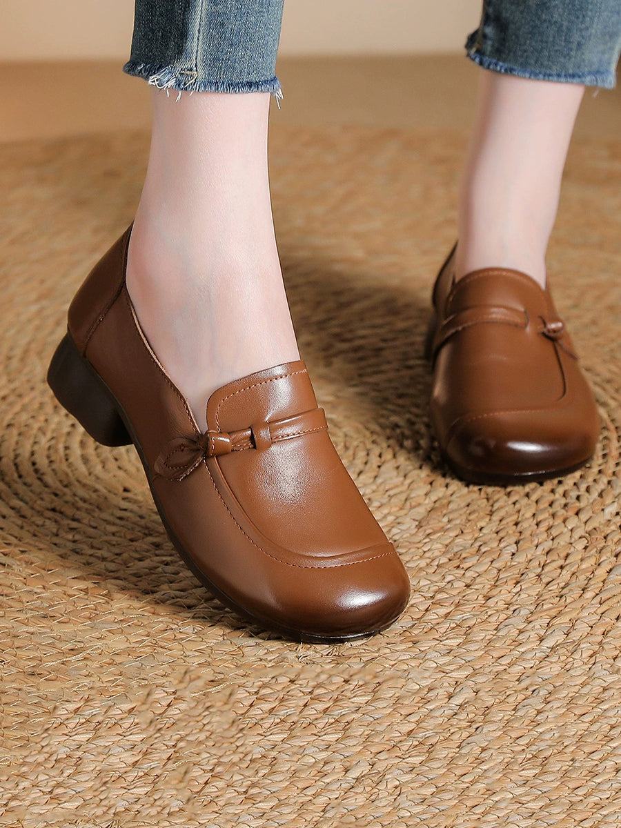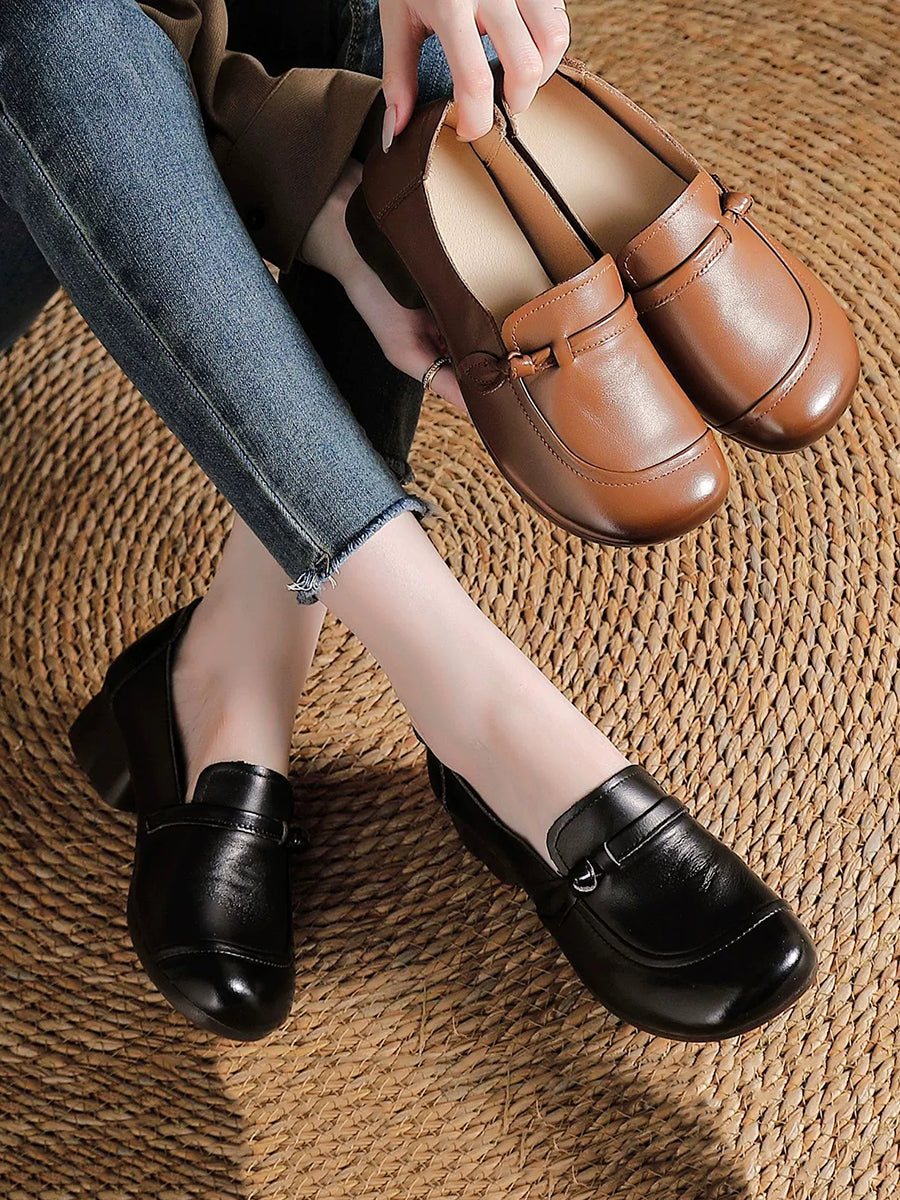Chaussures vintage pour femmes en cuir véritable à talons moyens