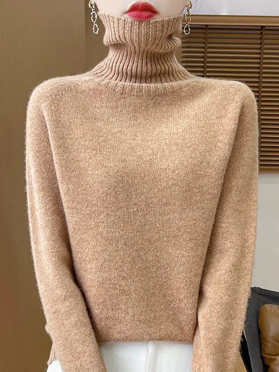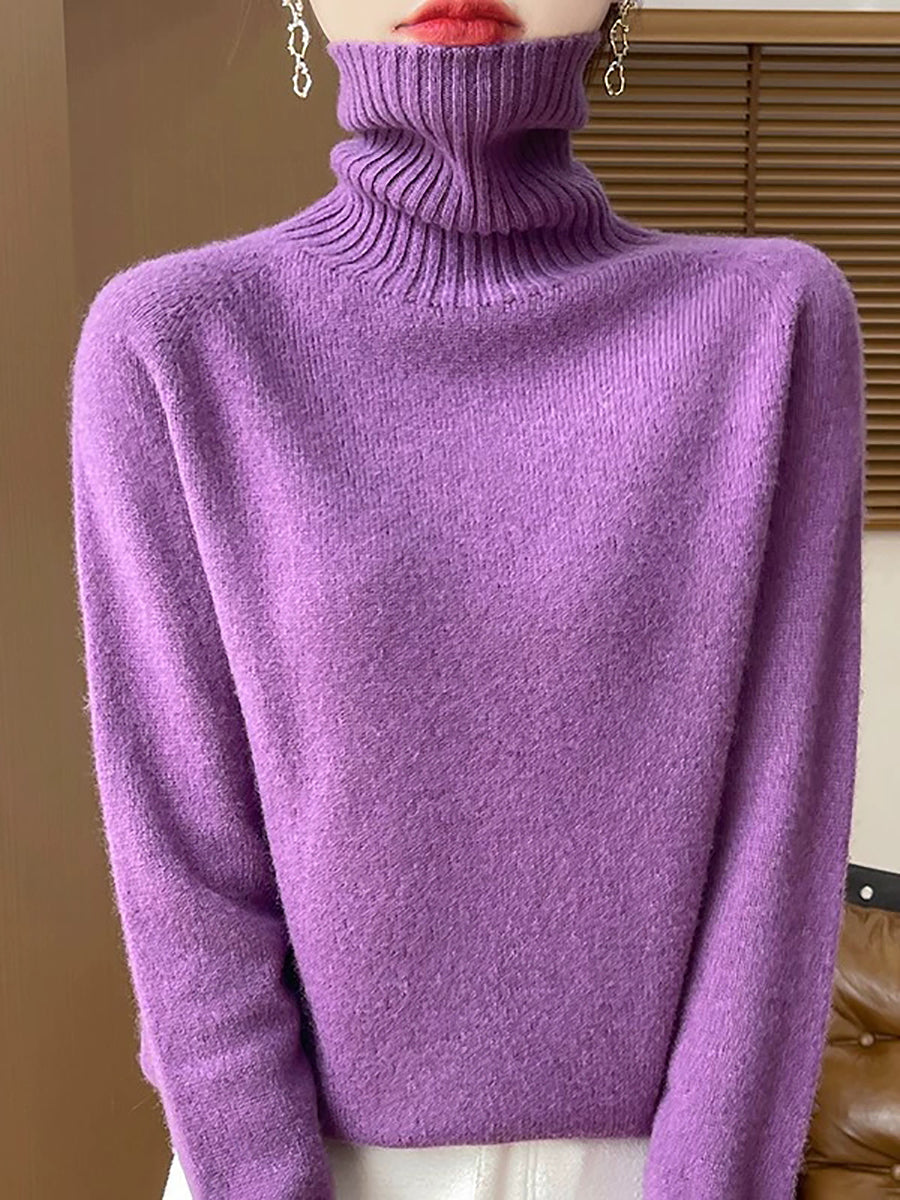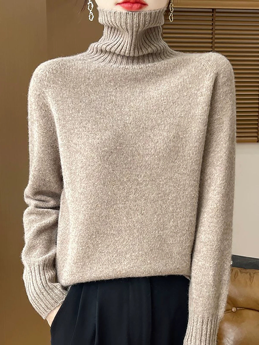 Pull à col roulé uni pour femme, style décontracté printanier