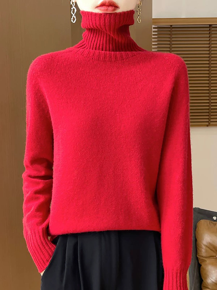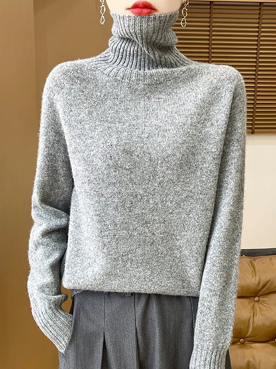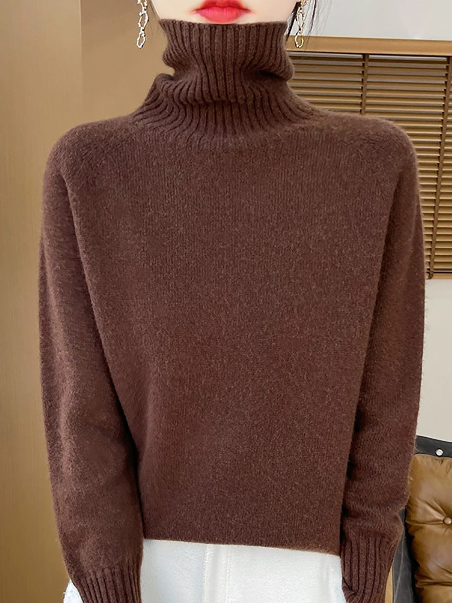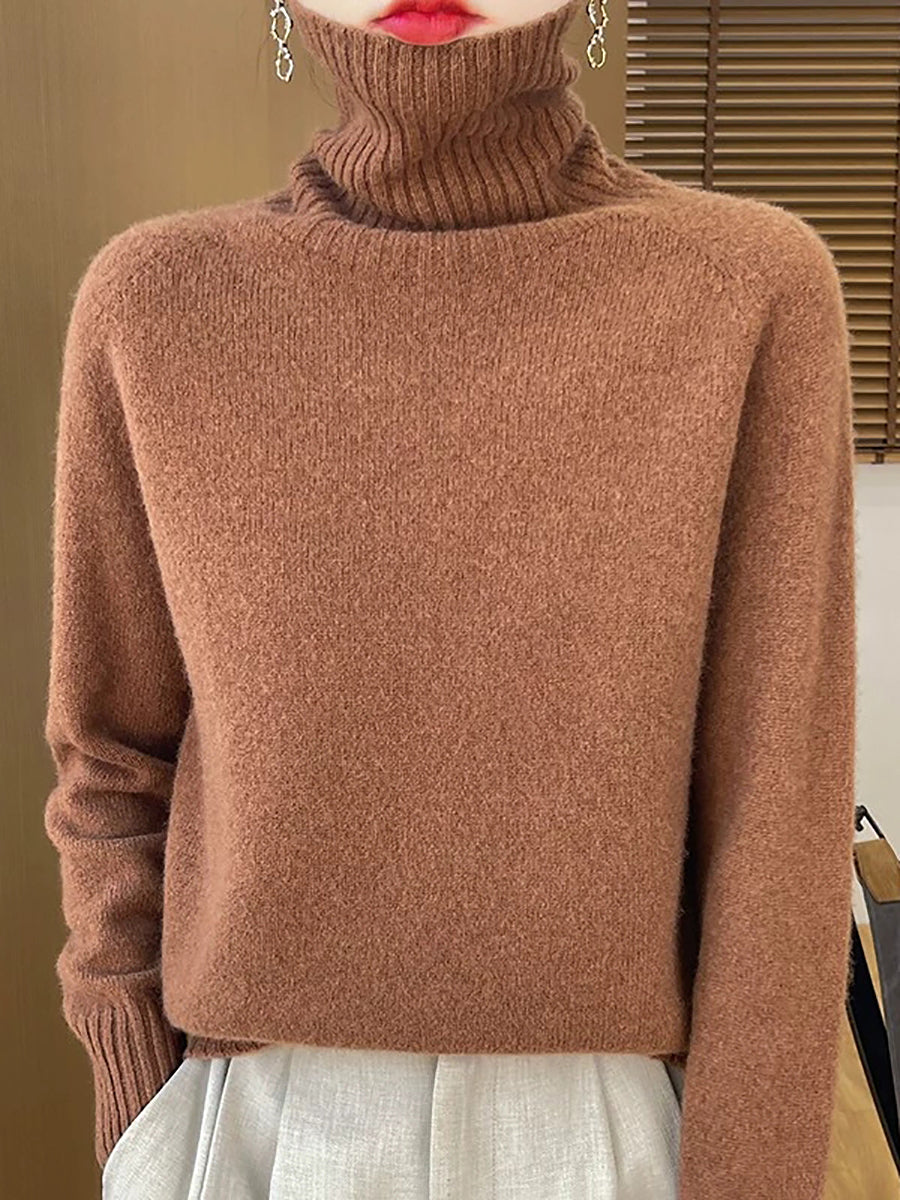 Pull à col roulé uni pour femme, style décontracté printanier
