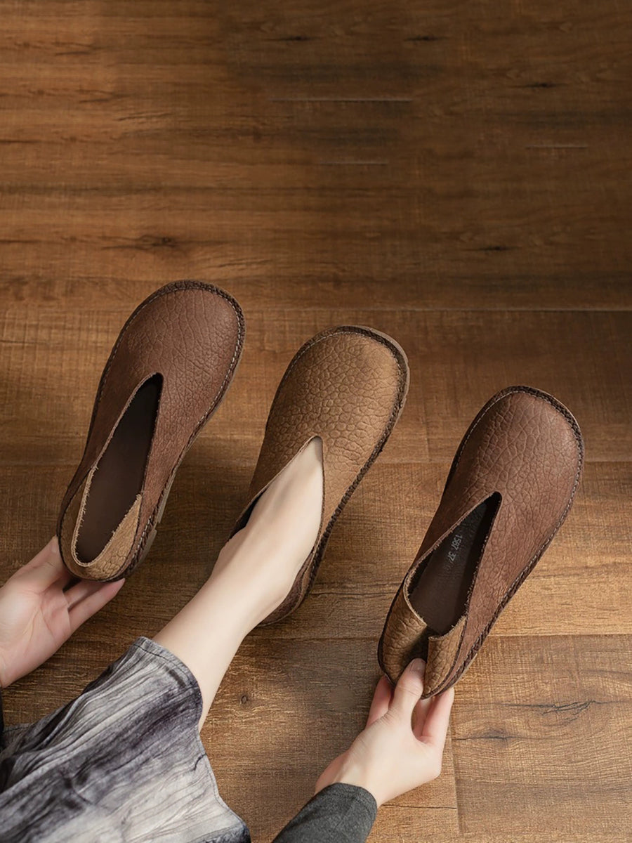 Chaussures plates d'été pour femmes en cuir véritable tressé