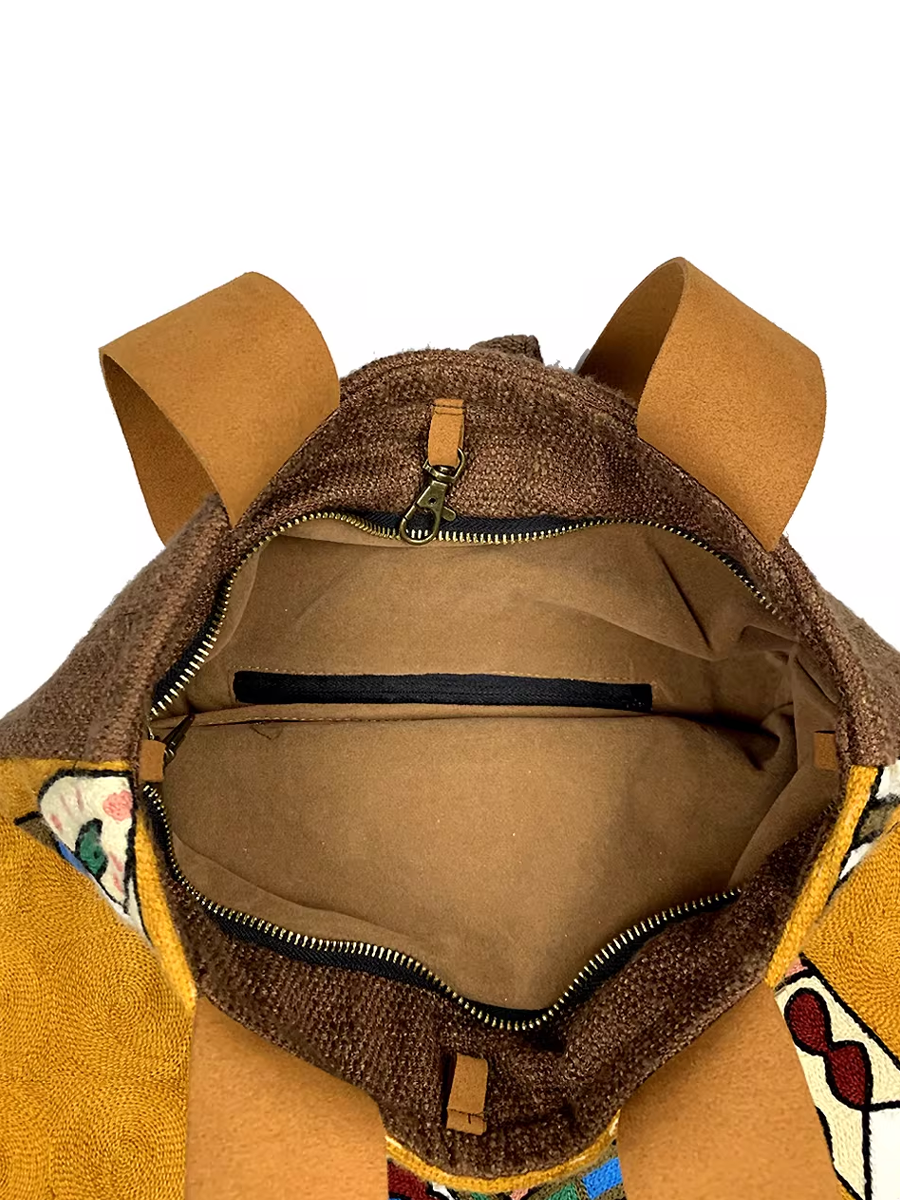 Sac à bandoulière ethnique brodé à pompons