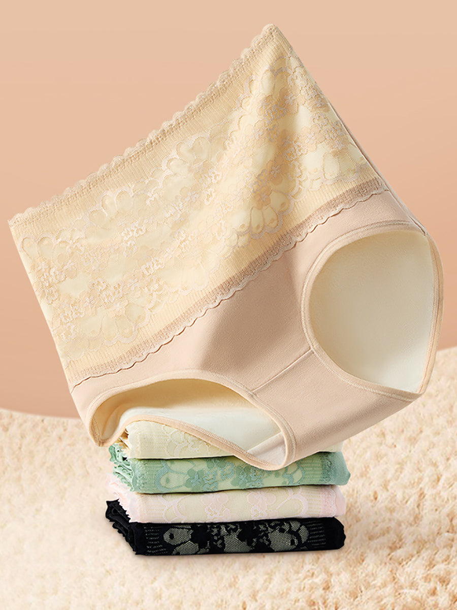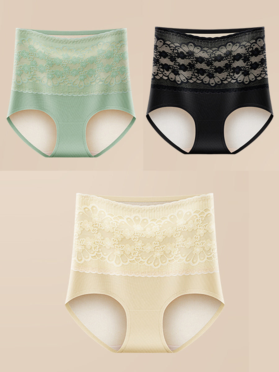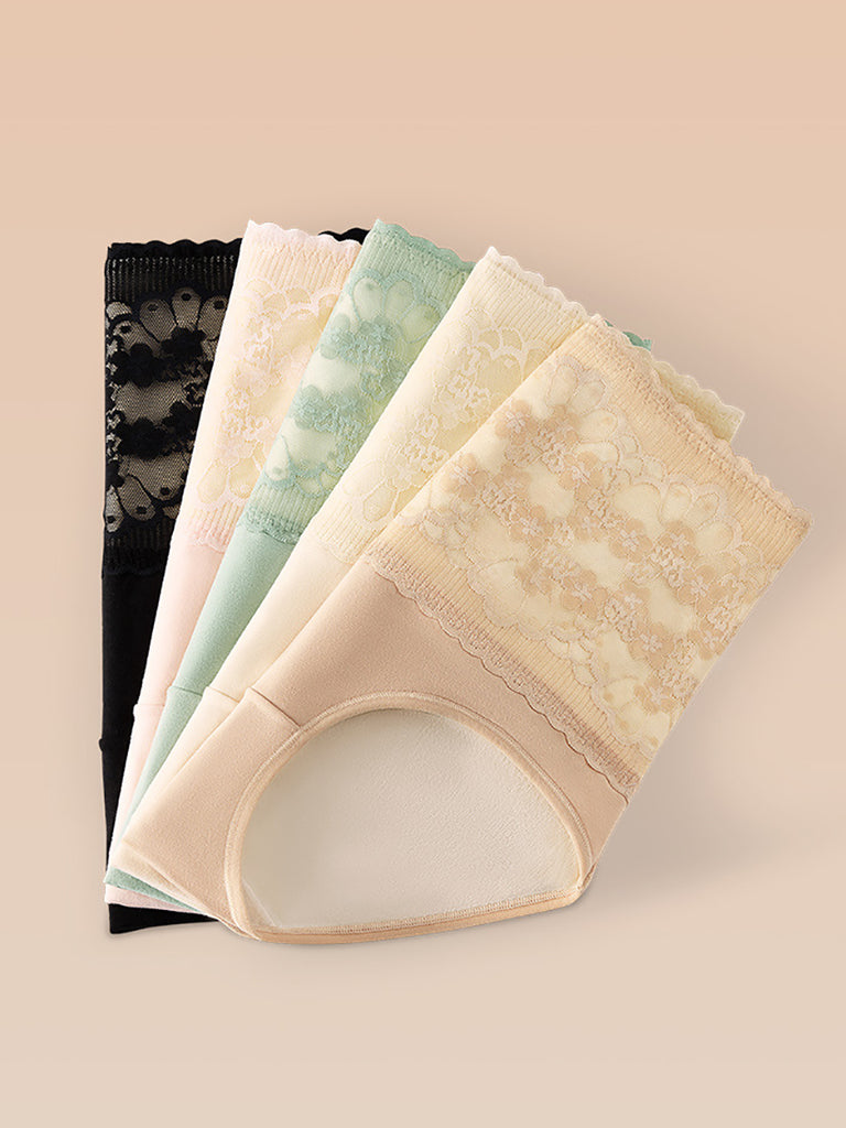 Lot de 5 sous-vêtements en coton taille haute, couleur unie, pour femme