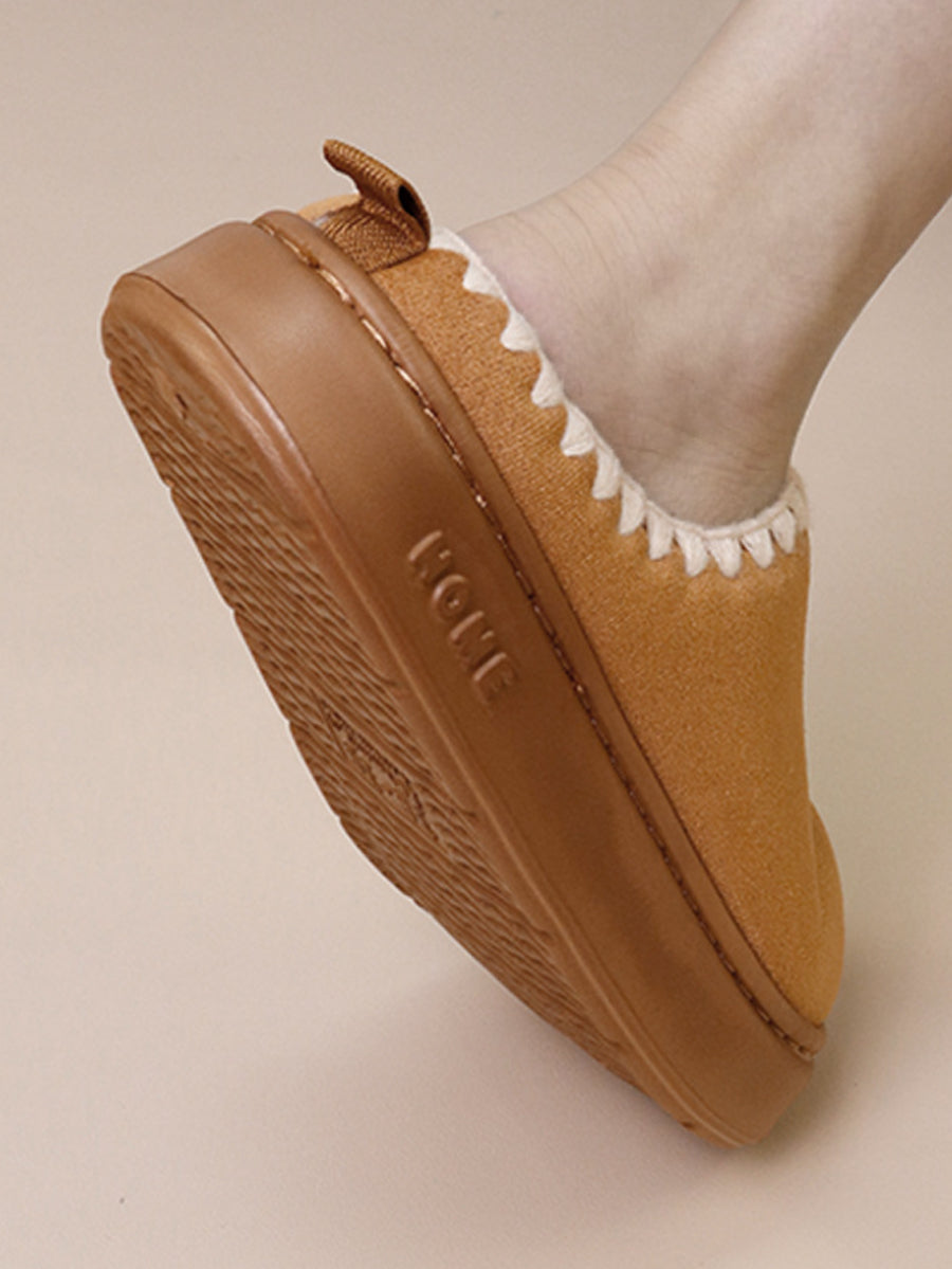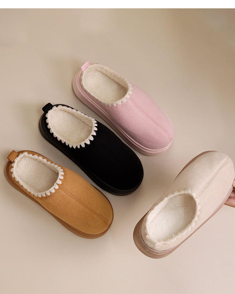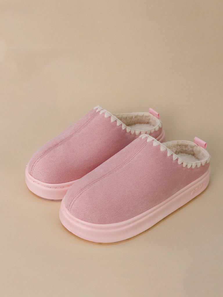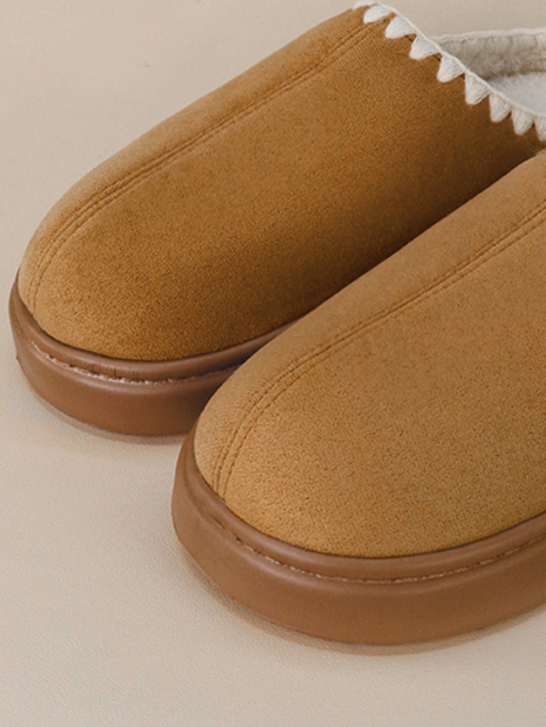 Pantoufles d'intérieur décontractées d'hiver pour couple, couleur unie, doublées en polaire