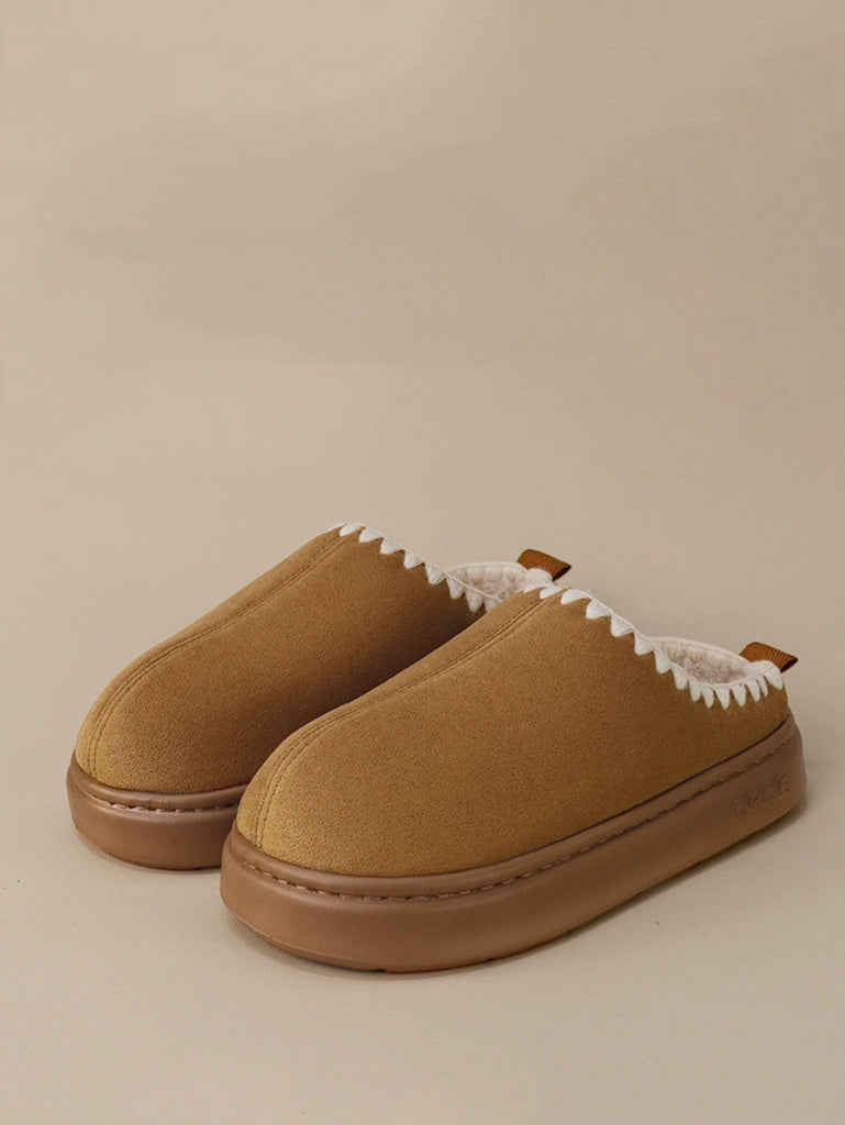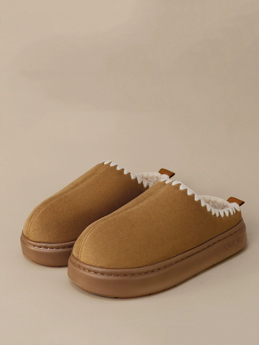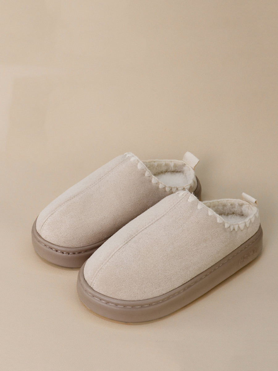 Pantoufles d'intérieur décontractées d'hiver pour couple, couleur unie, doublées en polaire