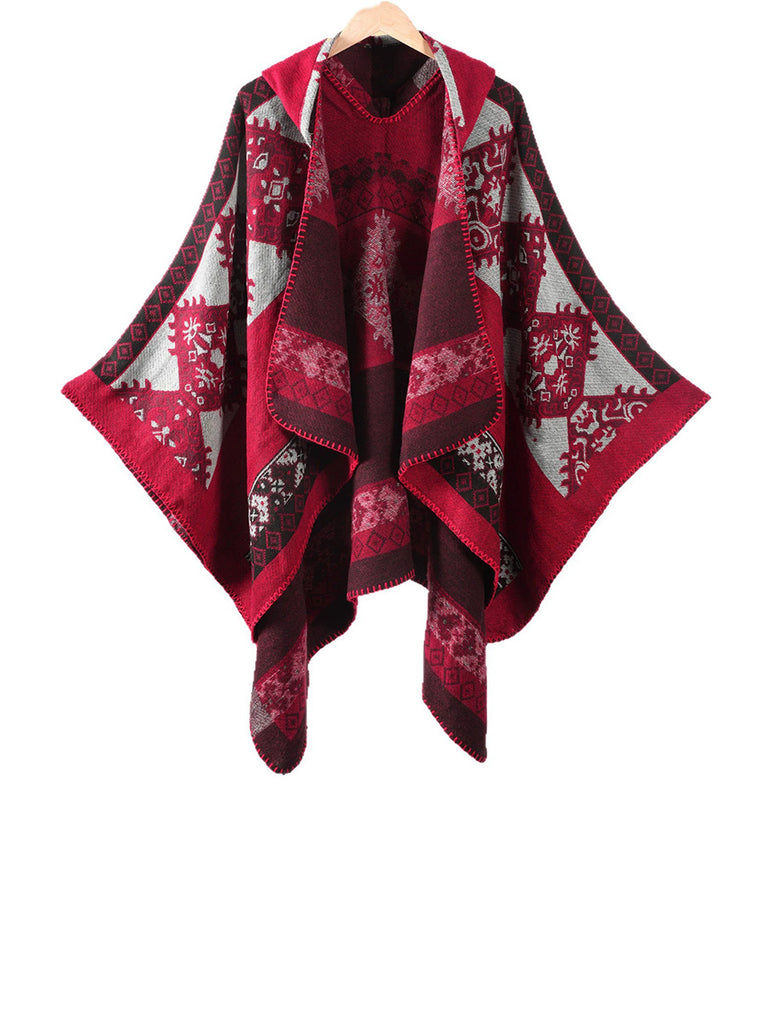 Châle à capuche chaud d'hiver géométrique ethnique