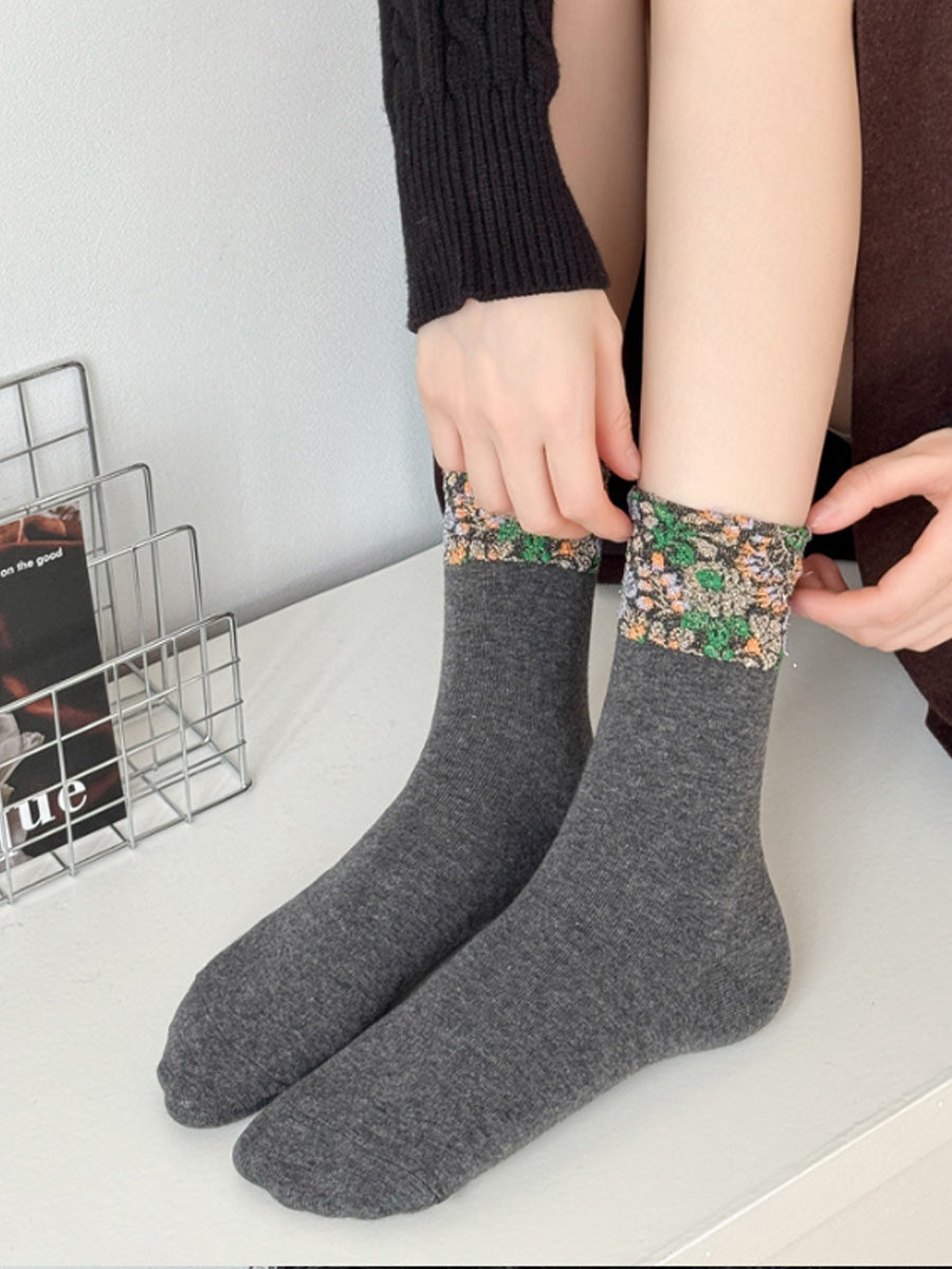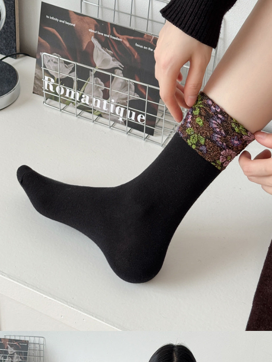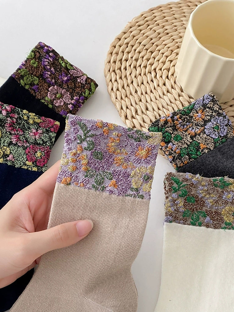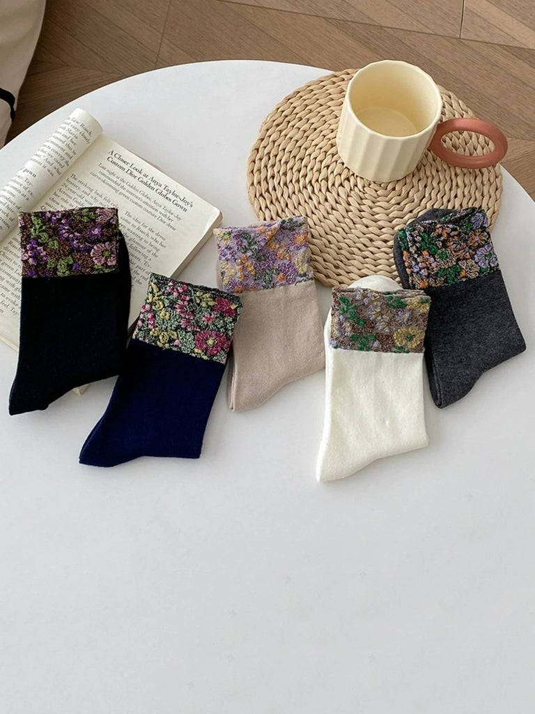 Lot de 5 paires de chaussettes d'hiver vintage pour femmes, à fleurs et jacquard.