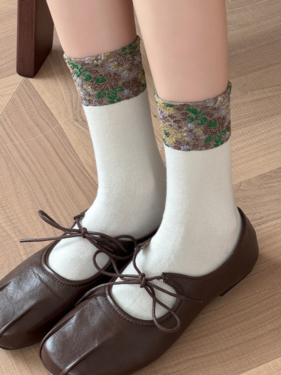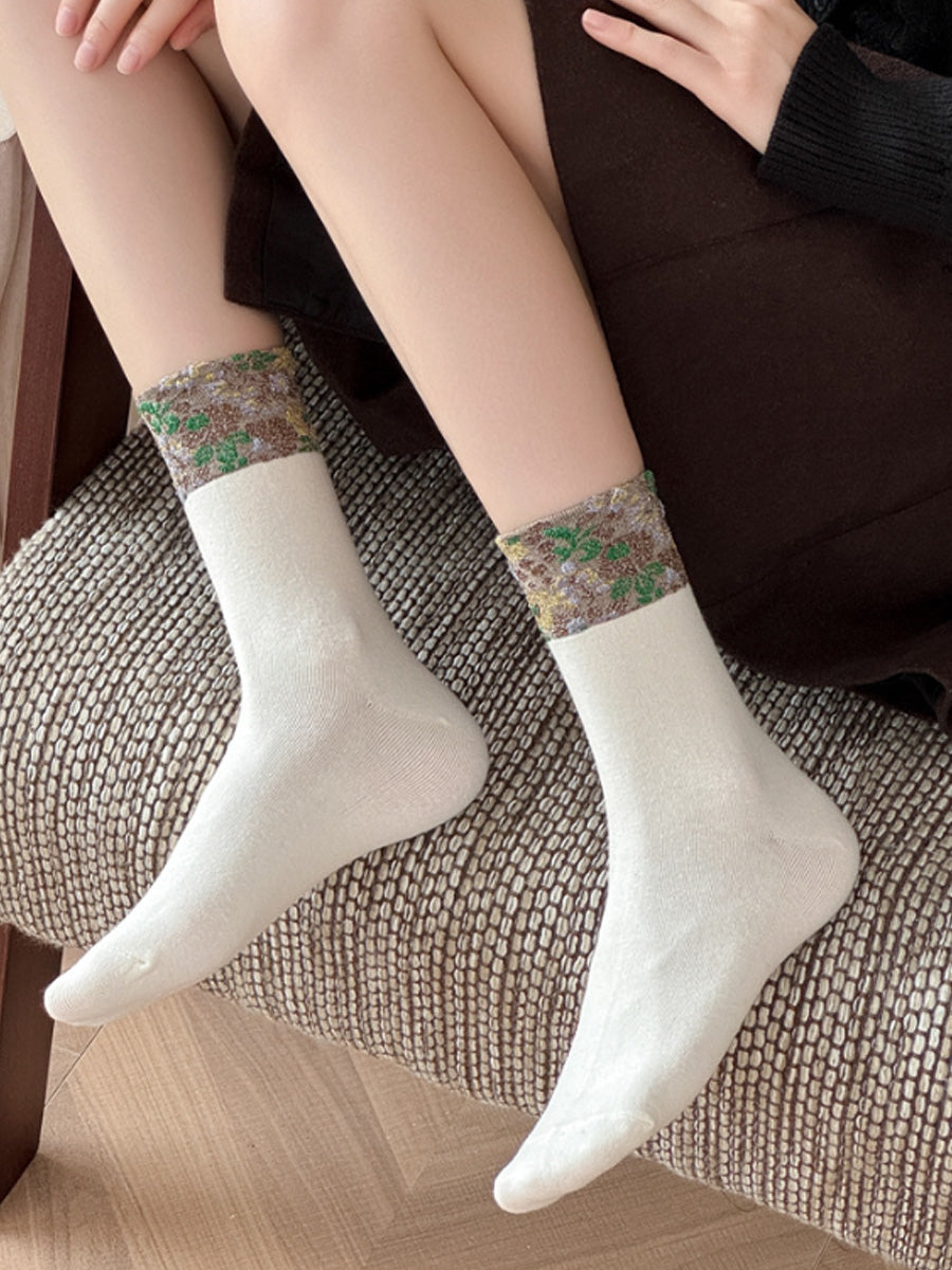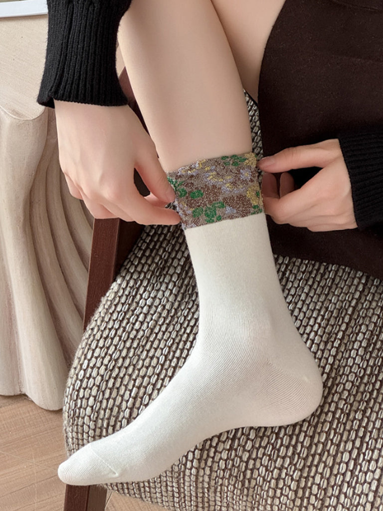 Lot de 5 paires de chaussettes d'hiver vintage pour femmes, à fleurs et jacquard.