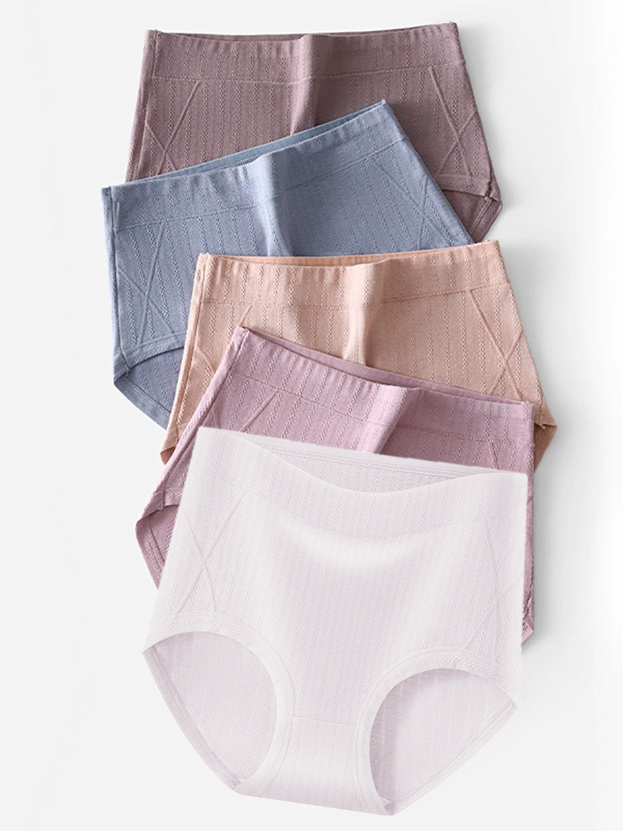 Lot de 5 sous-vêtements décontractés pour femmes, couleur unie, taille haute
