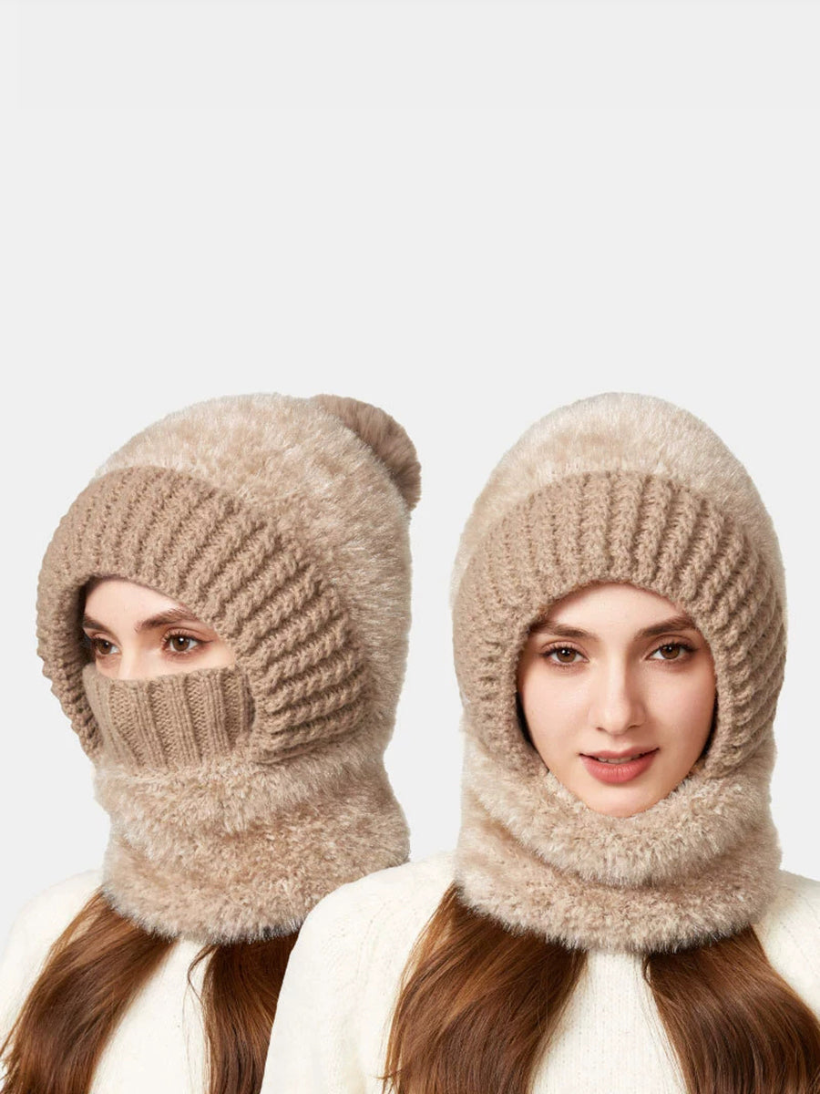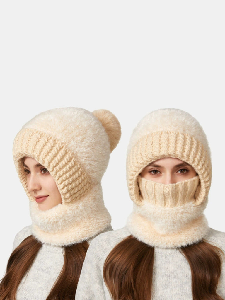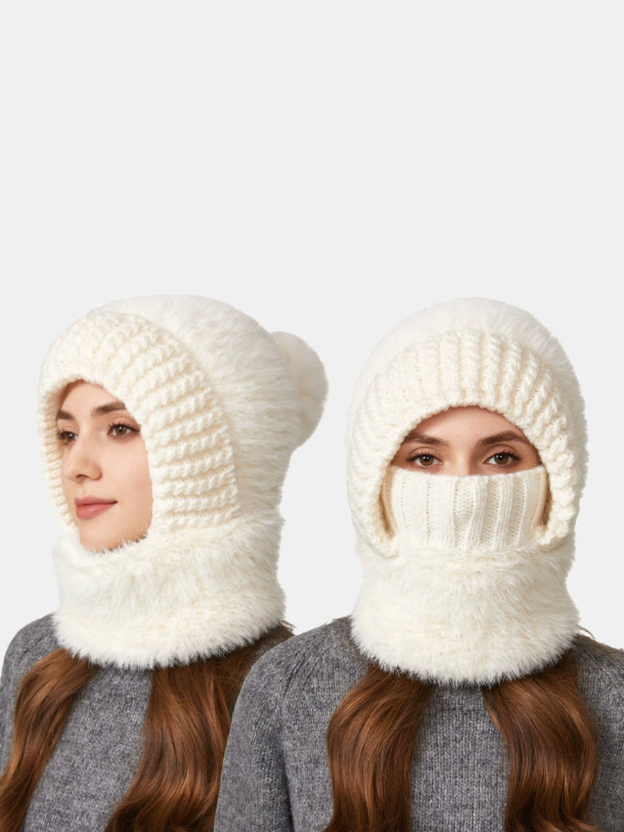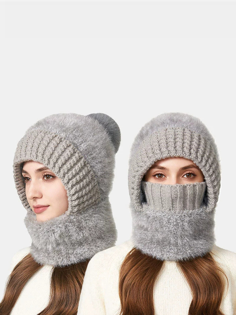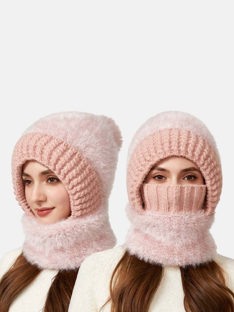 Écharpe et bonnet en peluche tricotée unie pour femme, style décontracté
