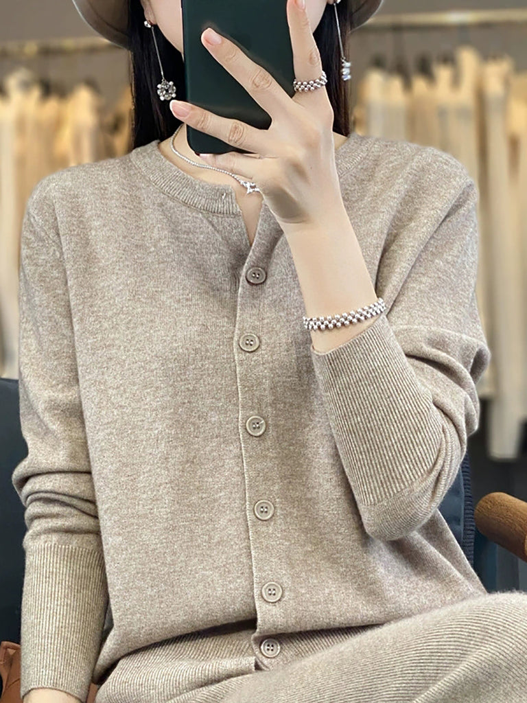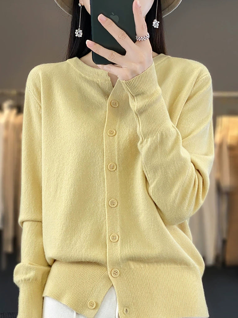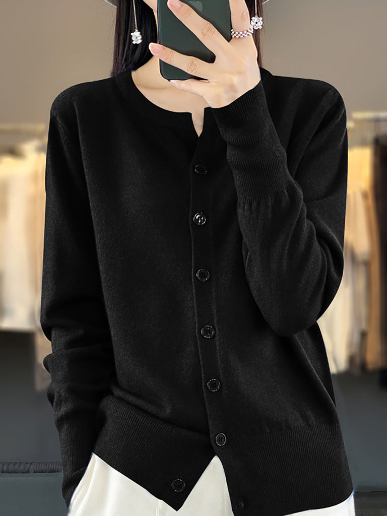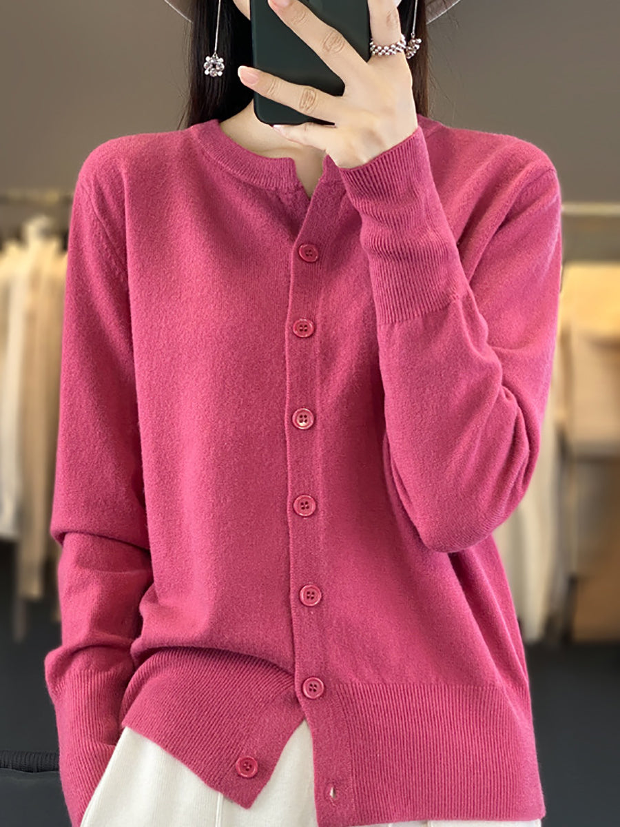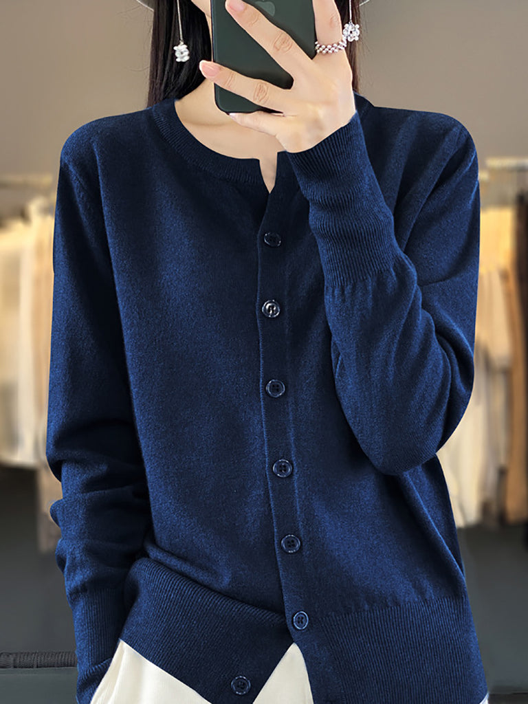 Pull d'hiver décontracté pour femme, couleur unie, en maille à col rond.