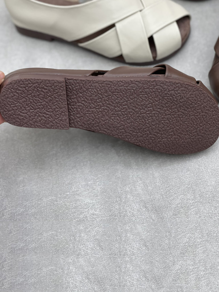 Chaussures à talons bas vintage en cuir véritable pour femmes
