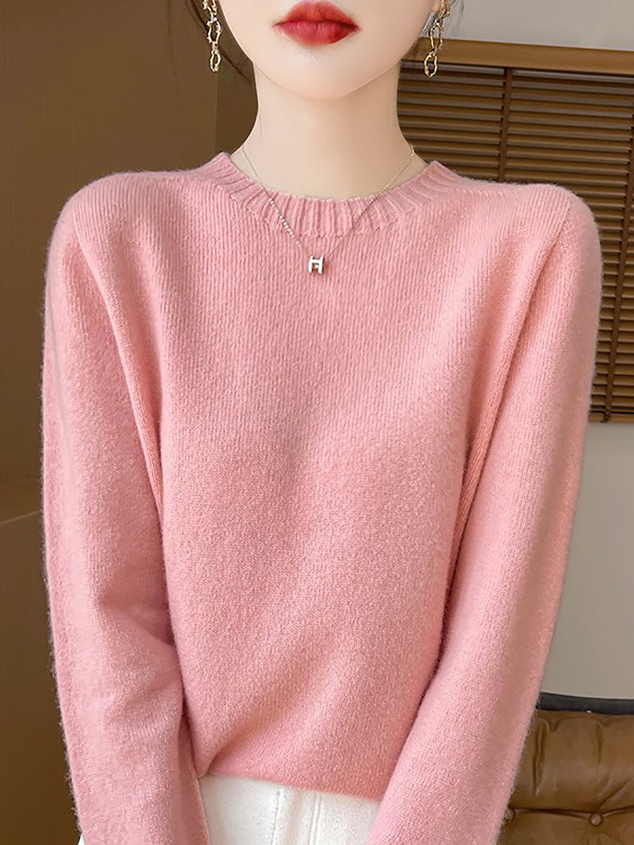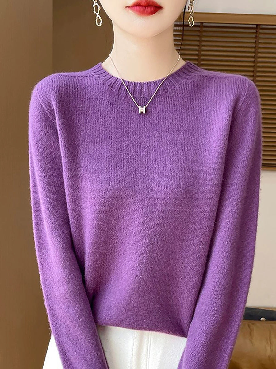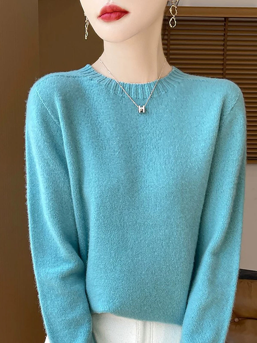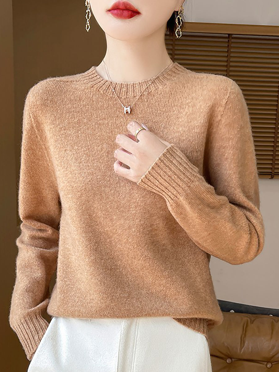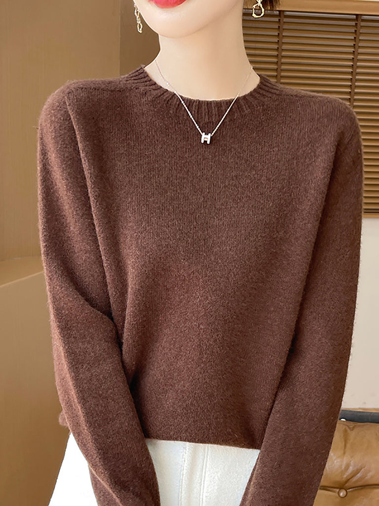 Pull d'hiver décontracté pour femme, couleur unie, en maille à col rond.