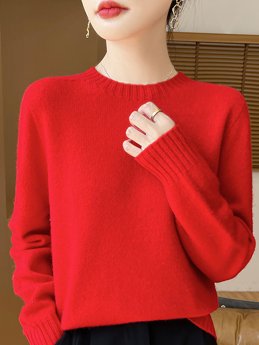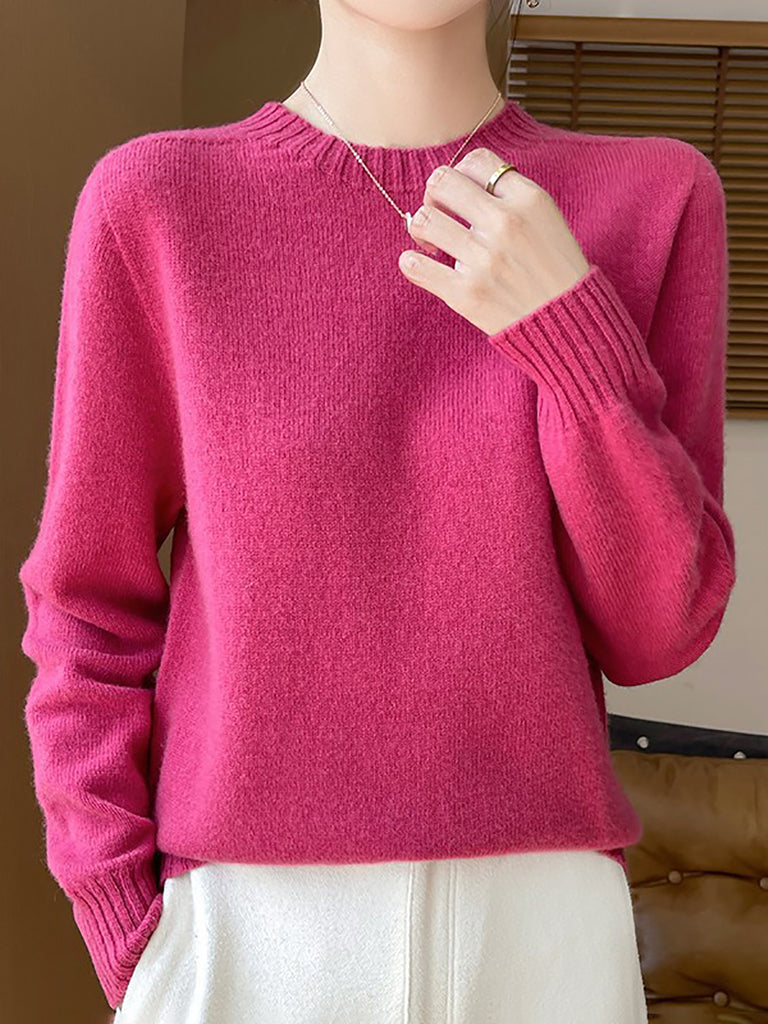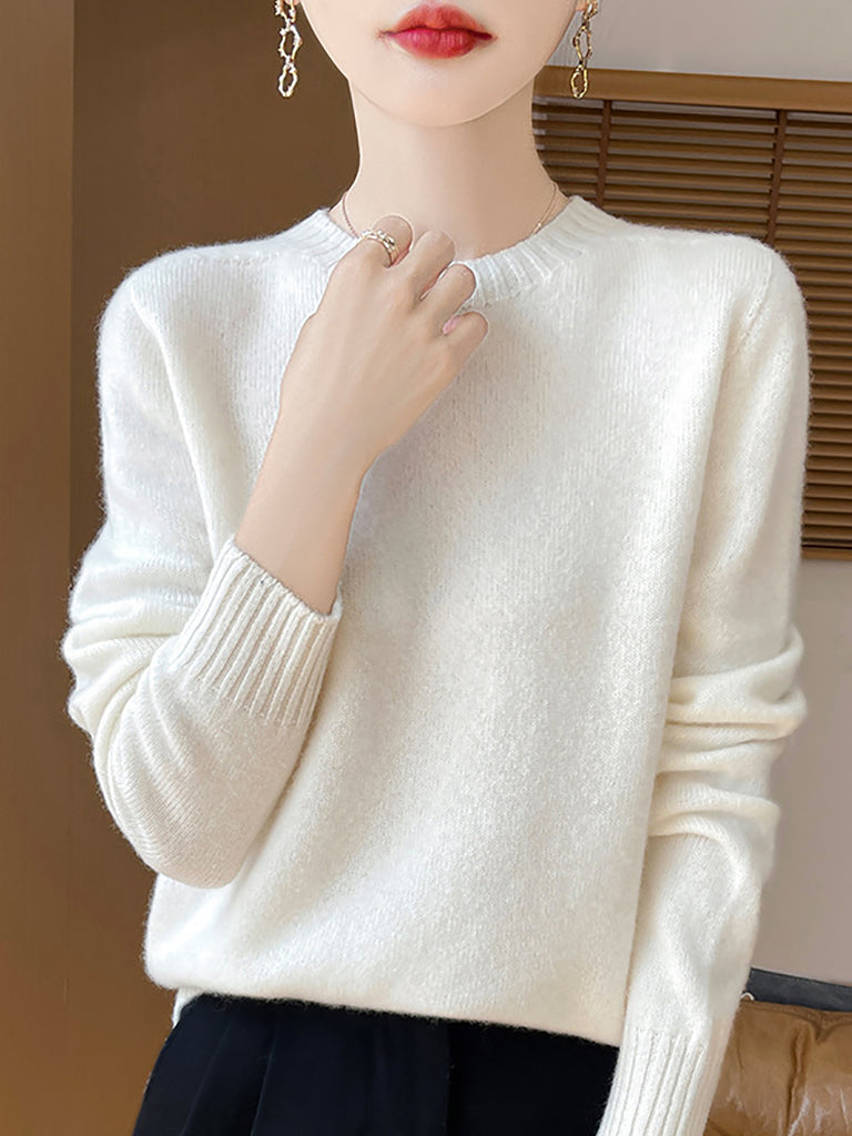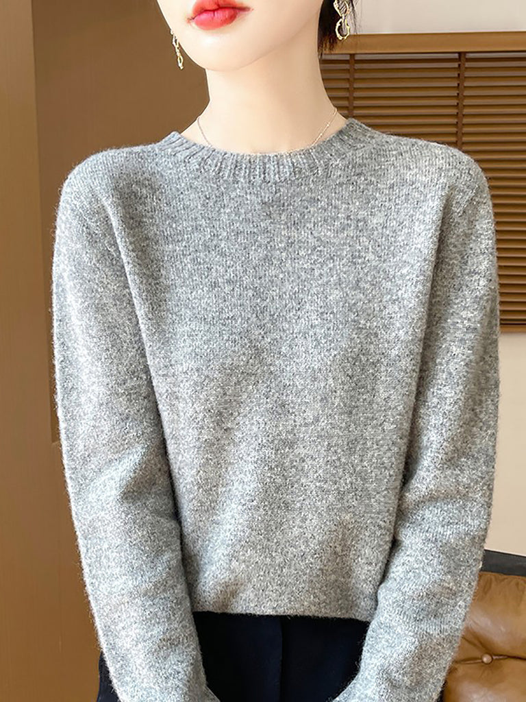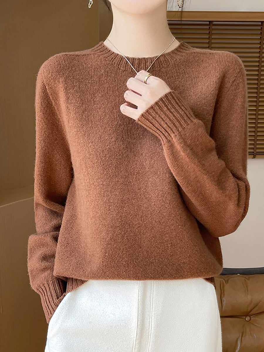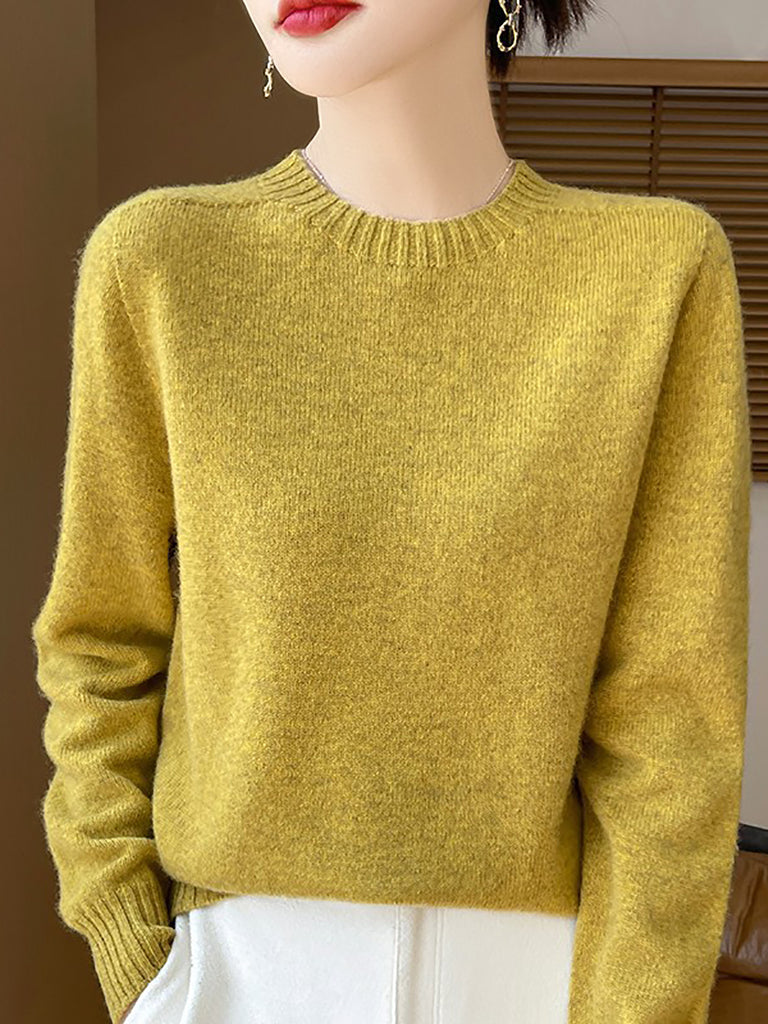 Pull d'hiver décontracté pour femme, couleur unie, en maille à col rond.