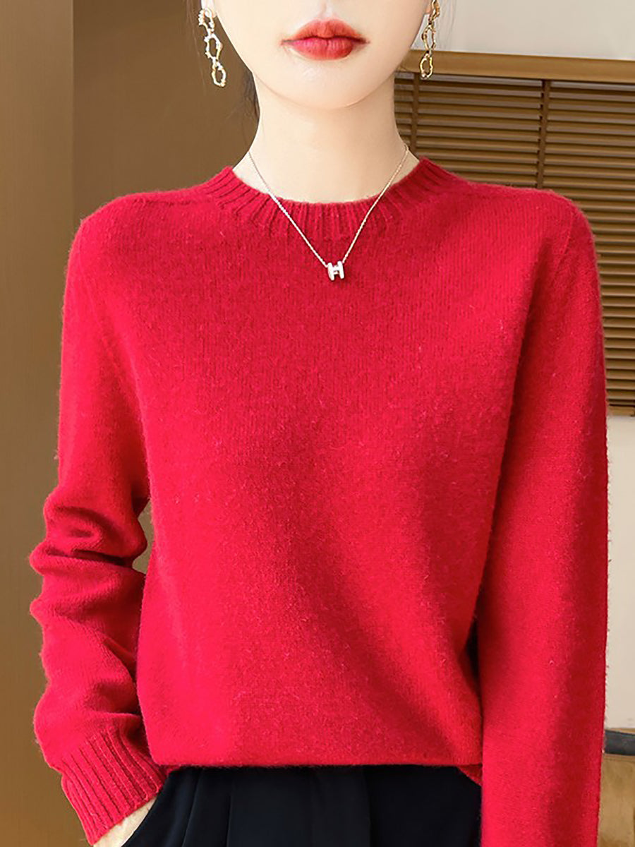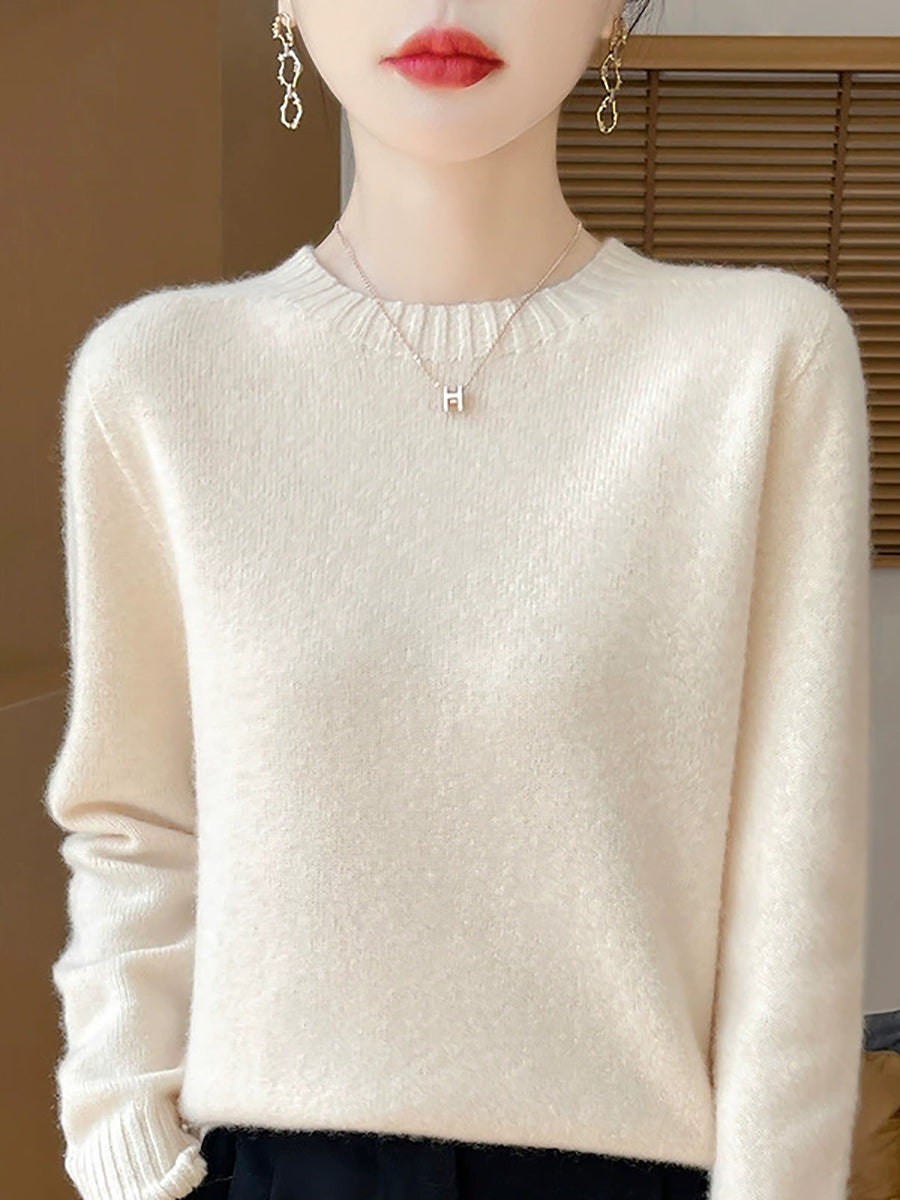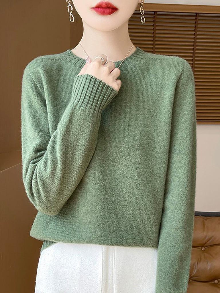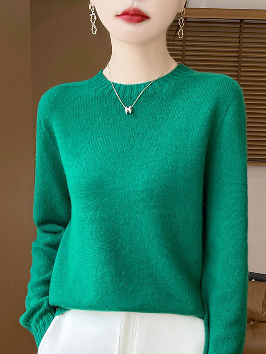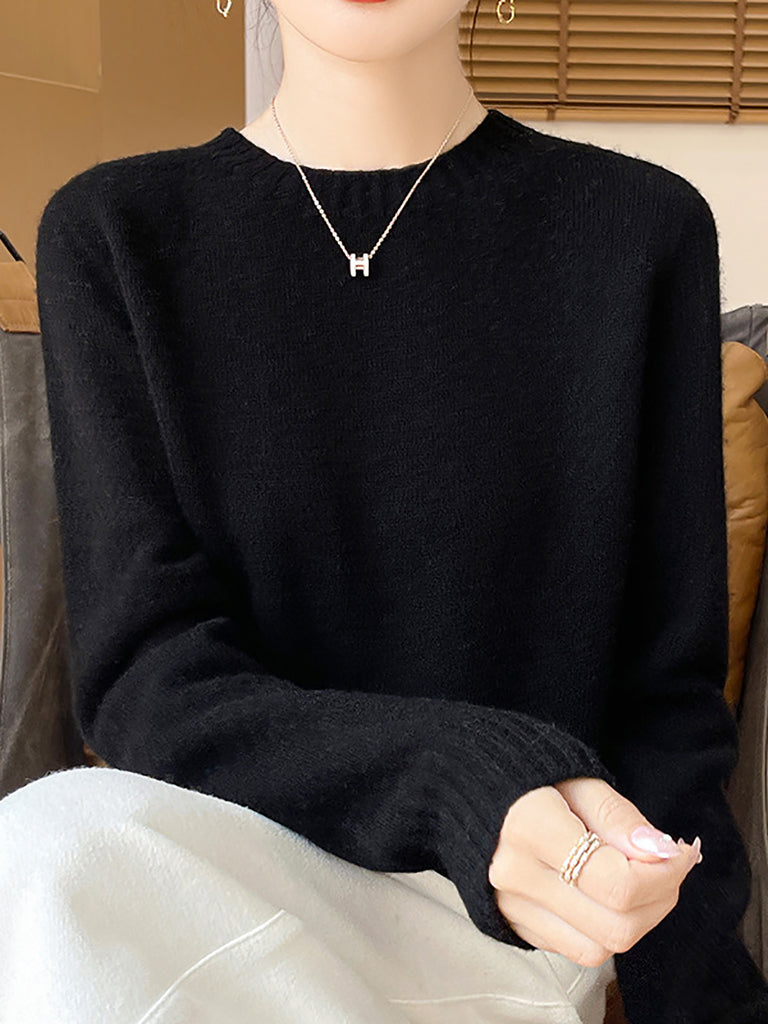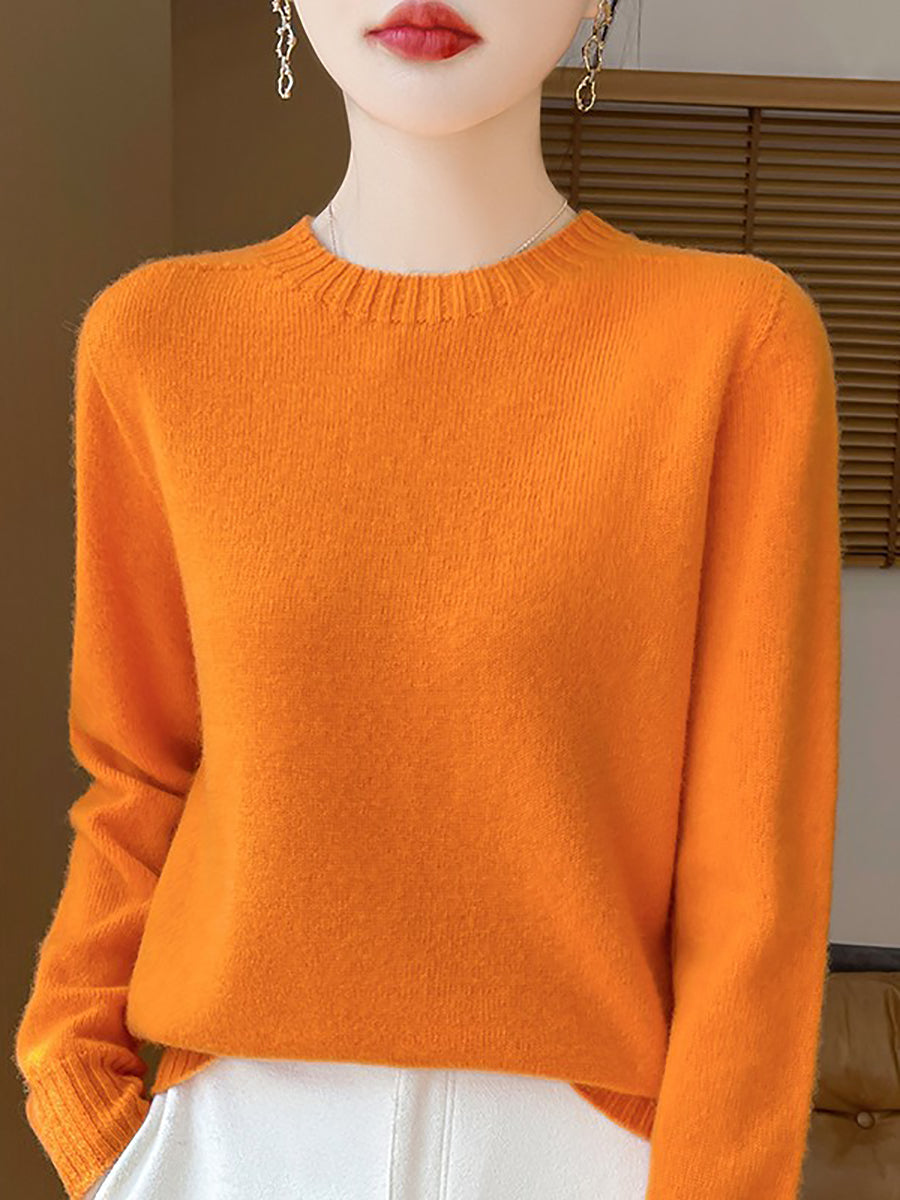 Pull d'hiver décontracté pour femme, couleur unie, en maille à col rond.