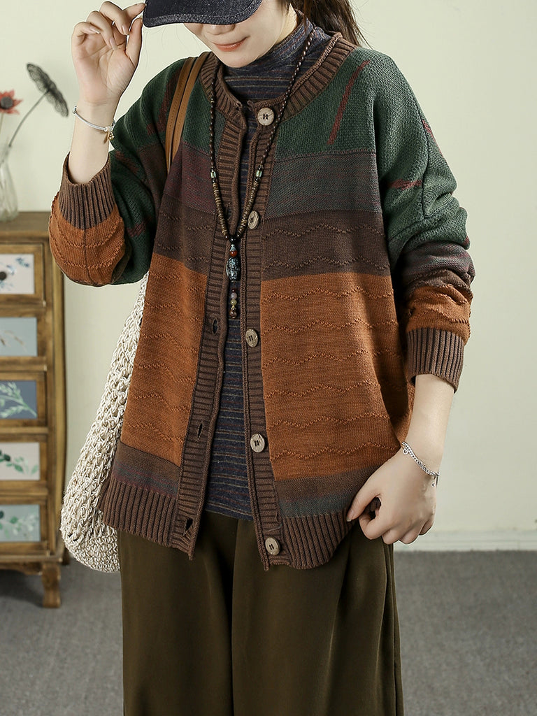 Pull tricoté à col rond et blocs de couleurs vintage pour femme, collection automne