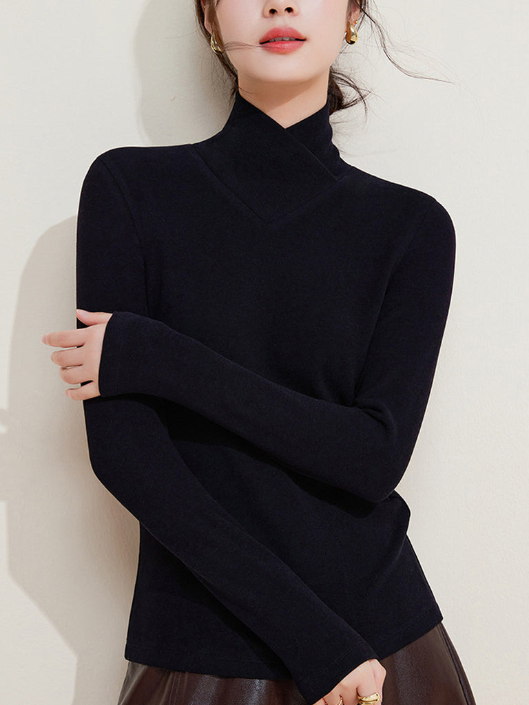 Chemisier vintage automne pour femme, couleur unie, col en V et boutonnage