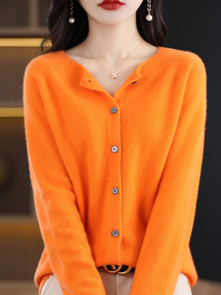 Gilet en coton à col en V pour femme, couleur unie, porté en automne